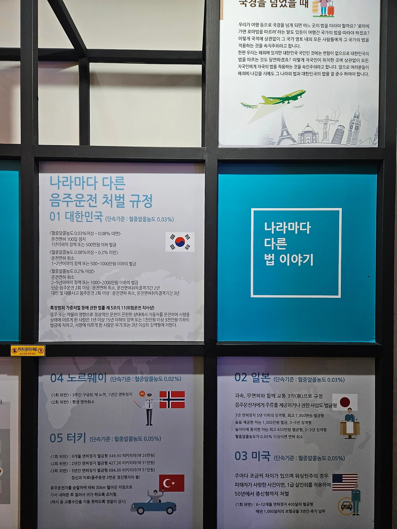 음주에 대한 각 나라별 처벌 규정이 흥미롭다.