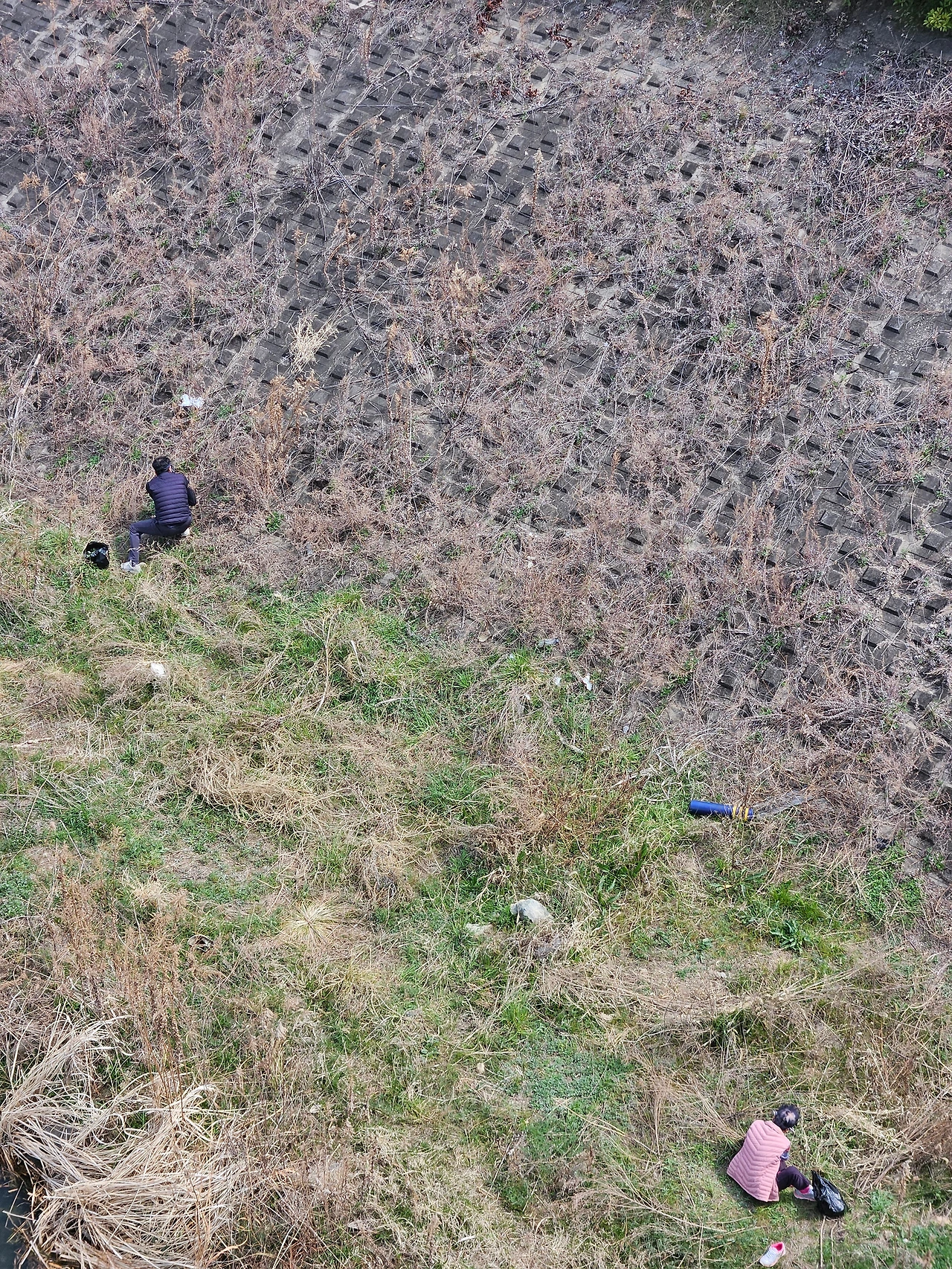 비교적 사람의 발길이 닿지 않는 그곳을 차지한 사람들이 쭈그리고 앉아 쑥을 캐고 계신다.
