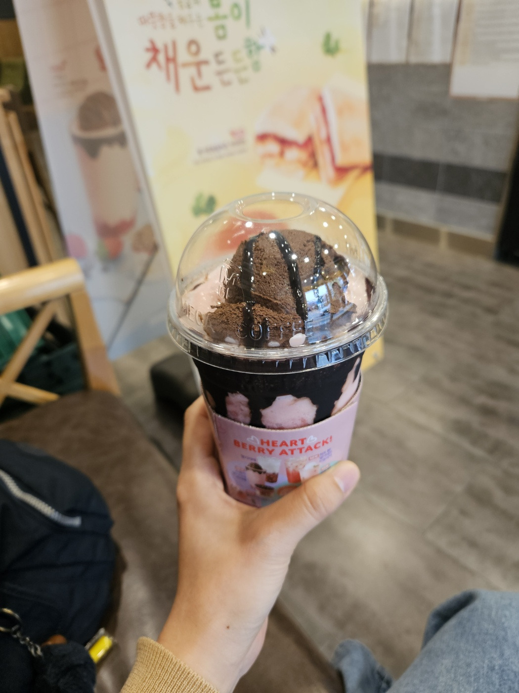 발목은 시큰거렸지만, 딸기 과육의 상큼함과 초코 아이스크림의 단맛이 어우러져 환상의 맛이었다.