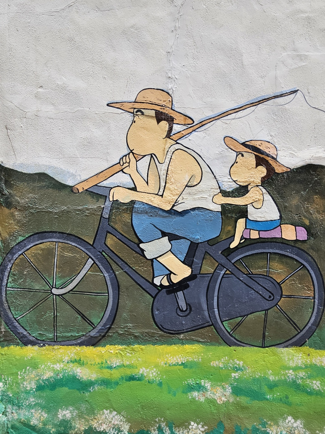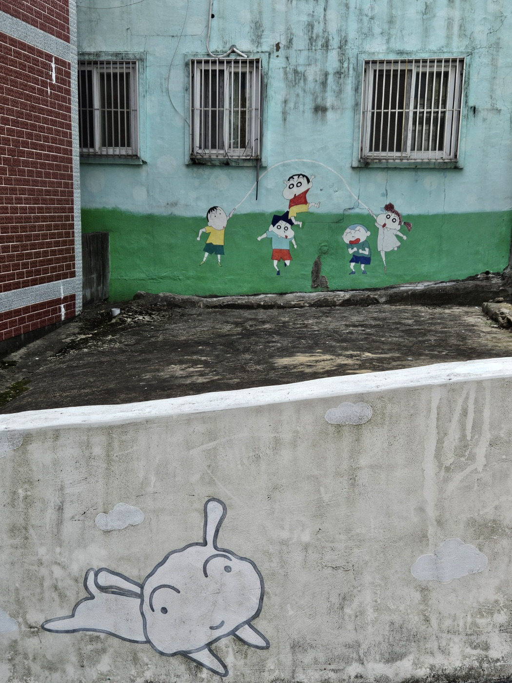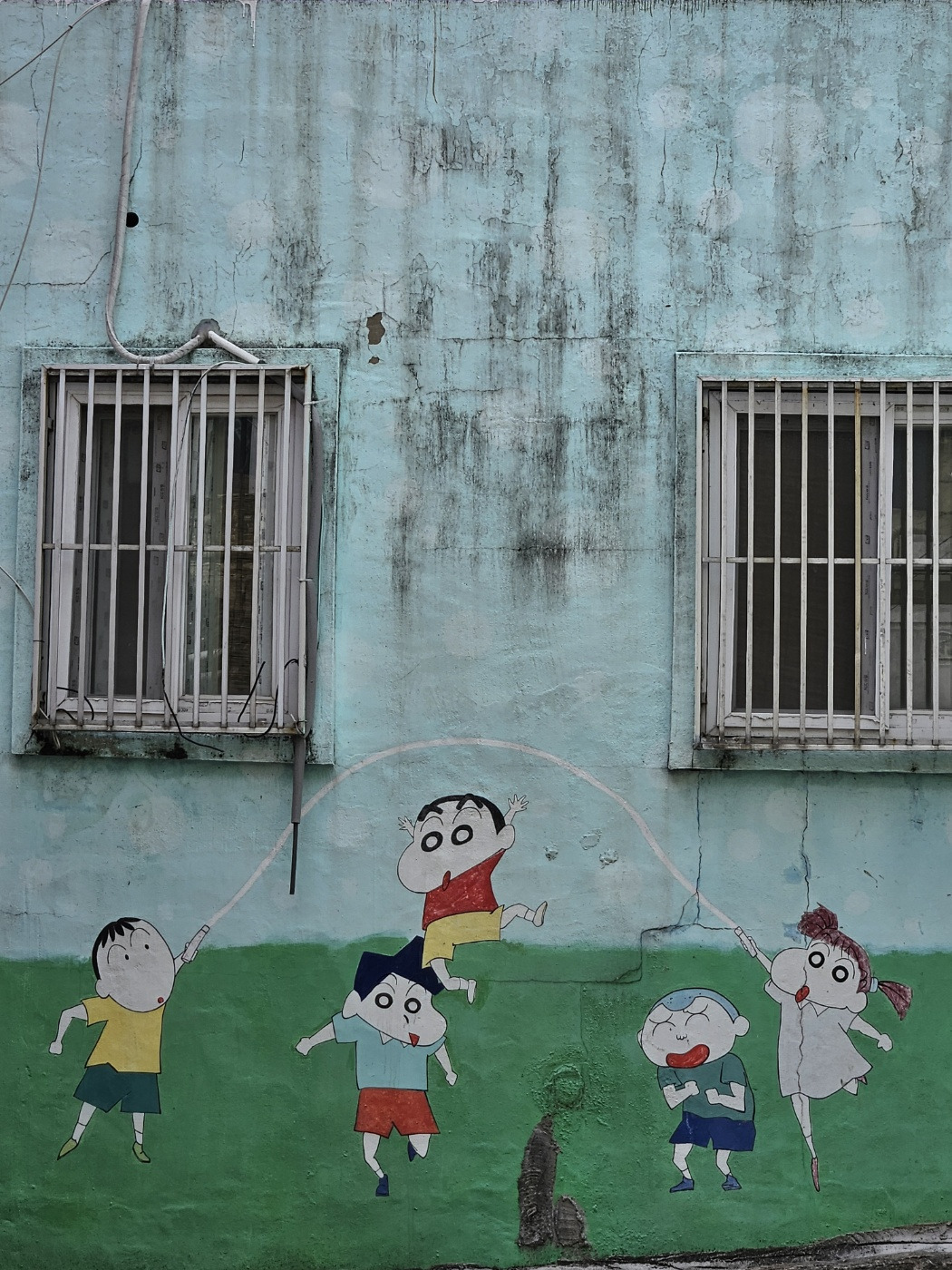 쇼츠에서 바라본 짱구벽화의 모습은 더 있어 보이고 보다 가까운 느낌이었는데, 실제로 보니 너무 멀리 있었고, 그려진 지 오래되어 색이 바랜 모습이었다. 새삼 기술의 발전을 느낀다.