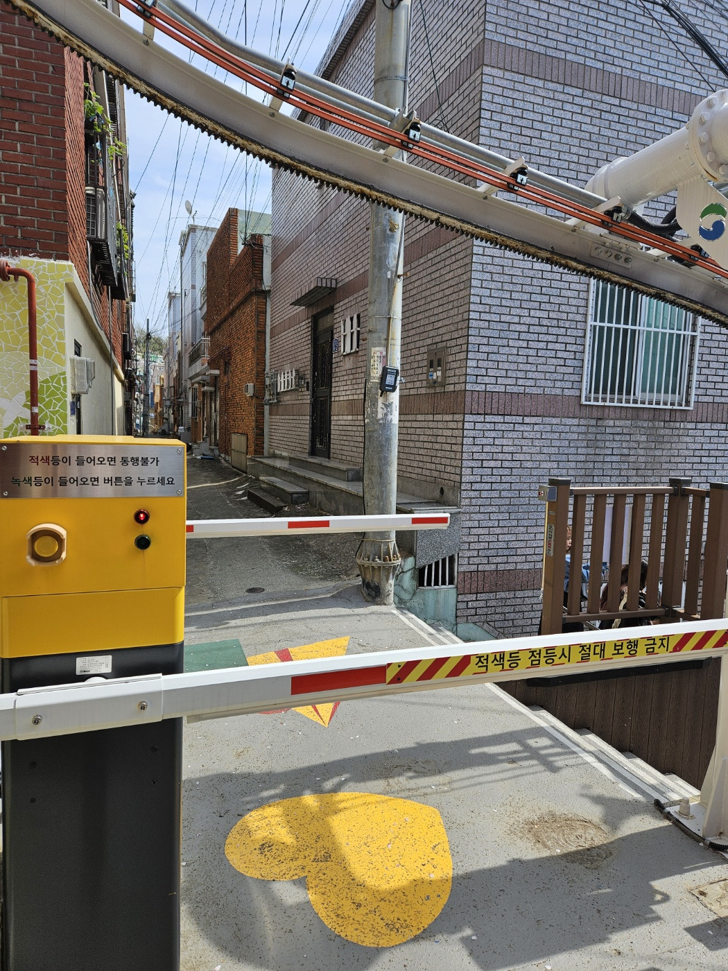 속도는 느리지만 주택가 사이에 길을 지나가기 때문에 차단기가 설치되어 있었다.