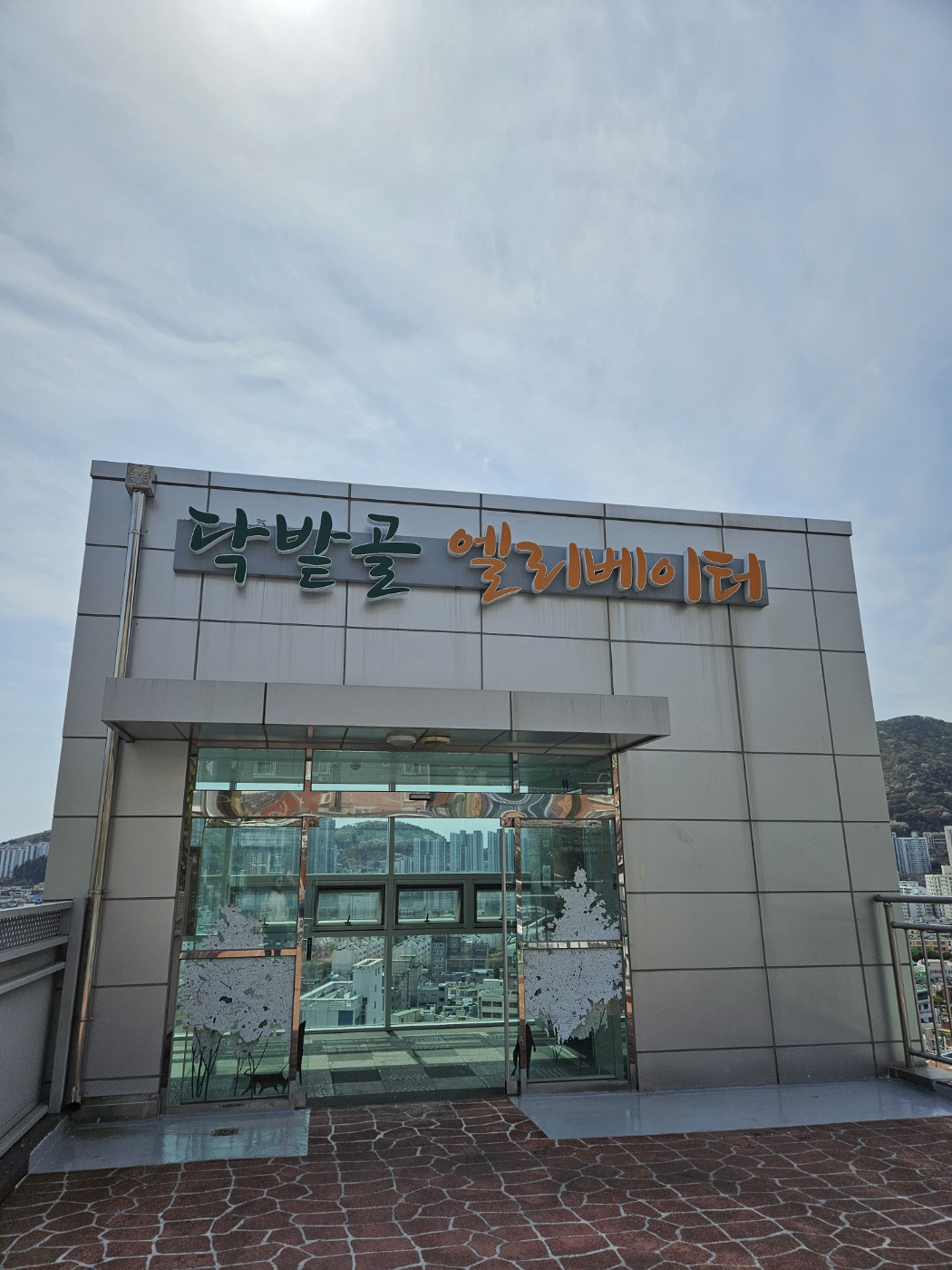 닥밭골 엘리베이터와 내려다본 닥밭골 행복마을