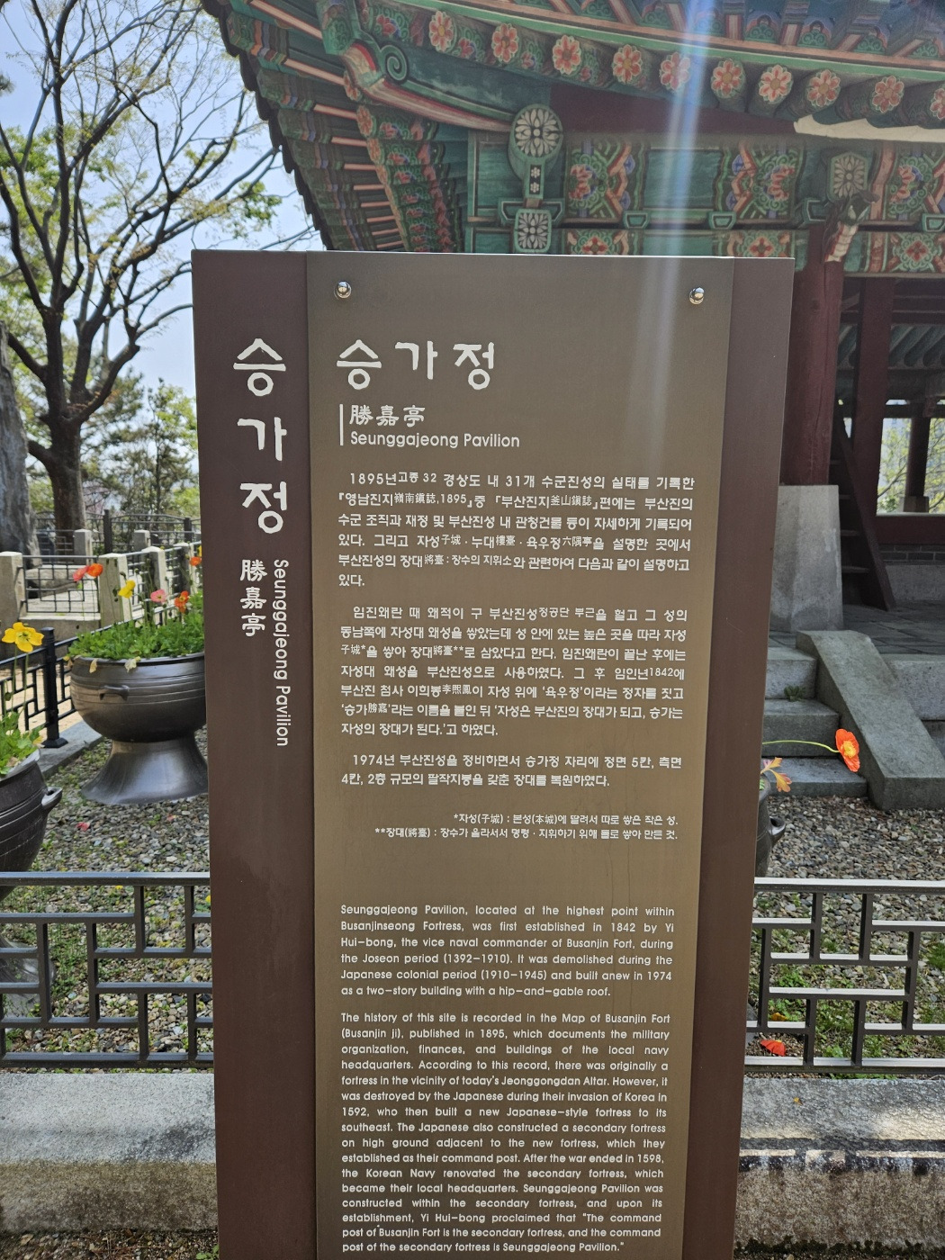 임진왜란 때 지어진 왜성을 활용해 부산진성으로 활용된 승가정. 그 옆에는 천장군 기념비가 있었다.