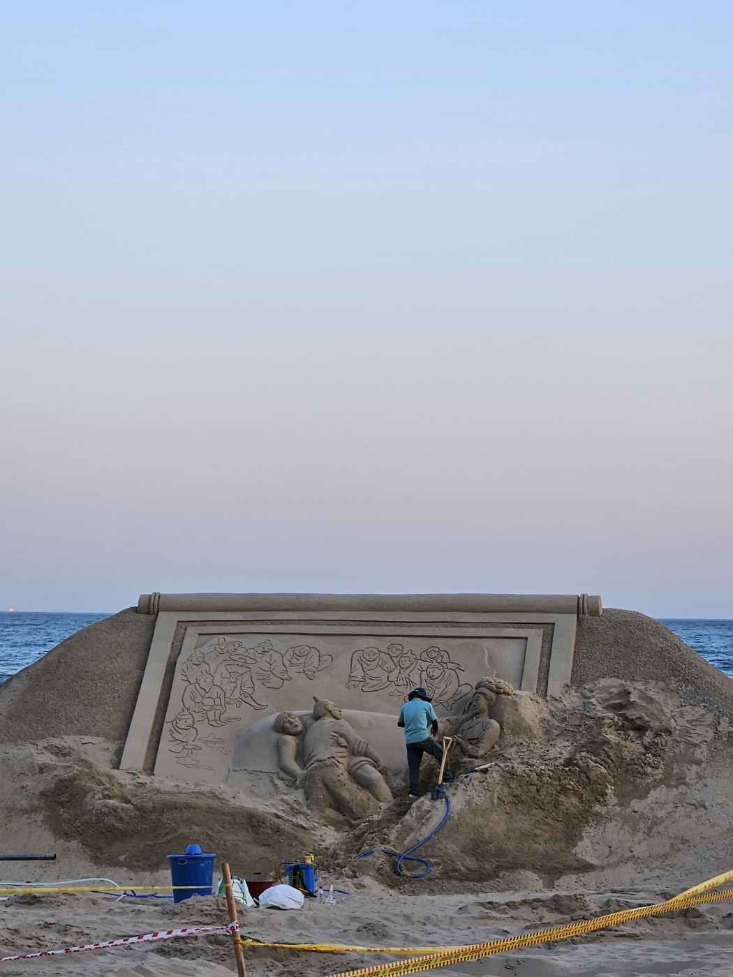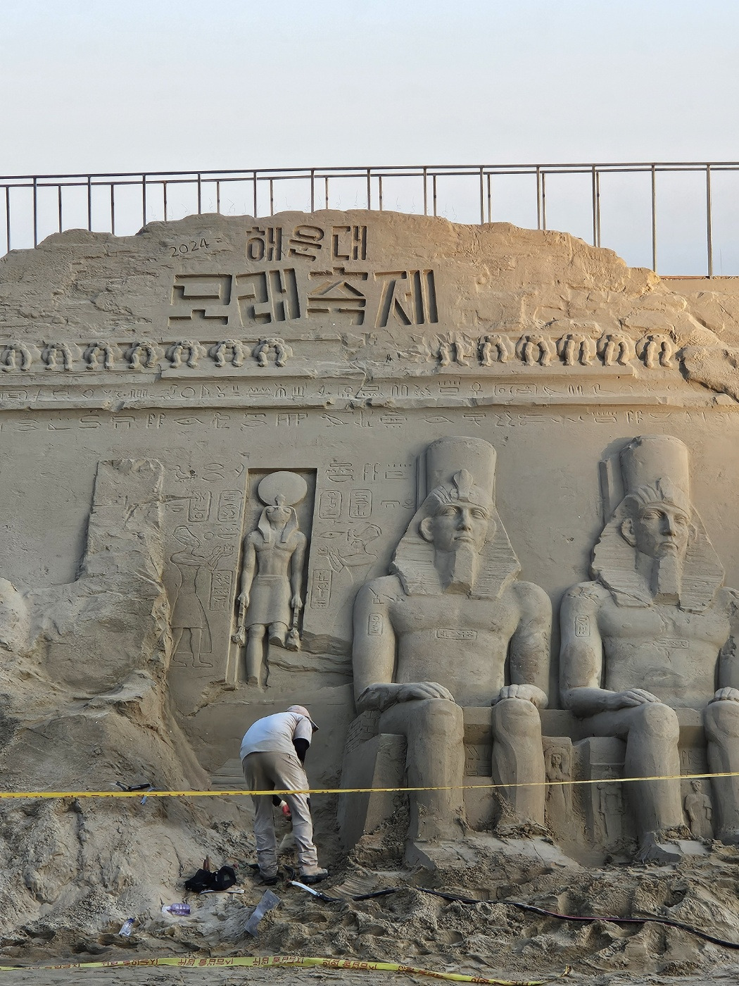 해운대 모래 조각하는 모습
