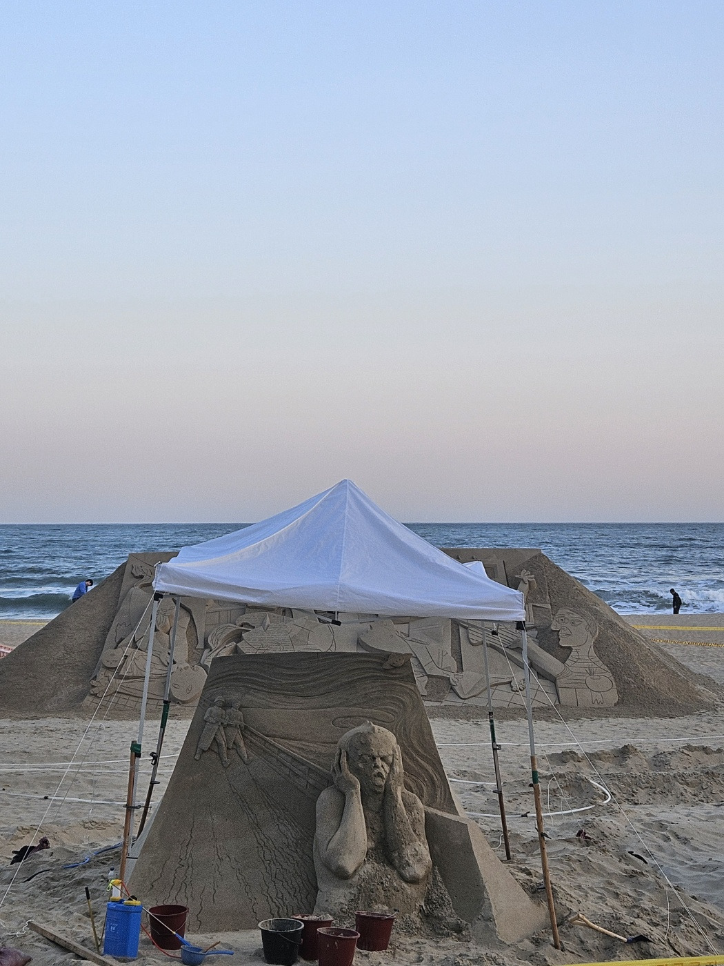 석양이 지는 가운데서도 최선을 다해 모래로 그림을 만드는 사람들을 볼 수 있었다.