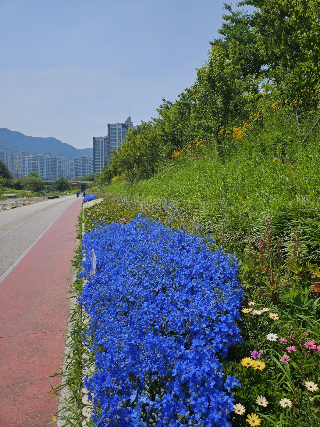 윗골공원 장미학습원의 입구에는 파란꽃이 여름의 시작을 알리는 중이다.