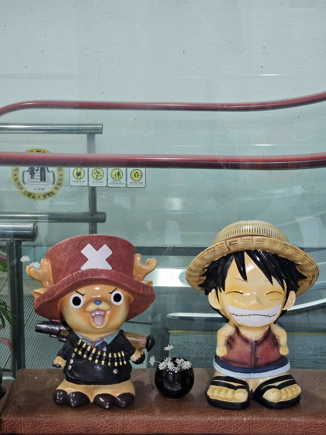 그리고 식당문을 나서는데 도자기로 구워진 쵸파와 루피가 있었다.