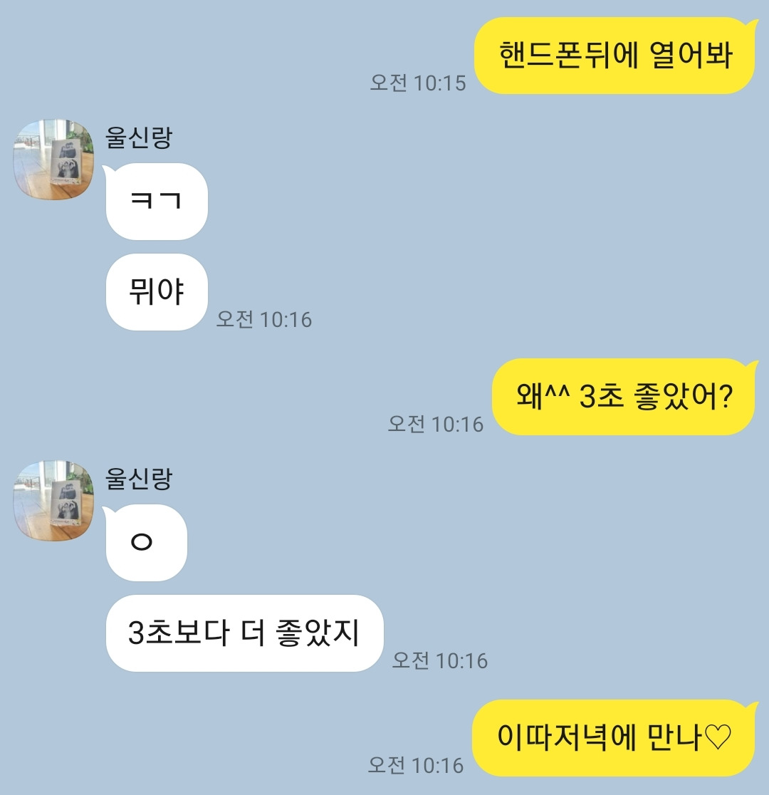 왜냐고 묻는다면... 남편을 놀래켜 주려 살그머니 편지를 넣고 기다리다, 다음날이면 "핸드폰 열어봐"라고 말하는 이 시간이 내겐 10초의 설렘이 되기에. 게다가 '3초 보다 더 좋다'라는 남편의 말에 10초 더 행복해지기에...