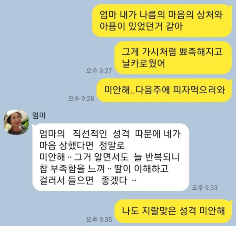 엄마랑 길게 말하면 서로 상처만 받으니까,