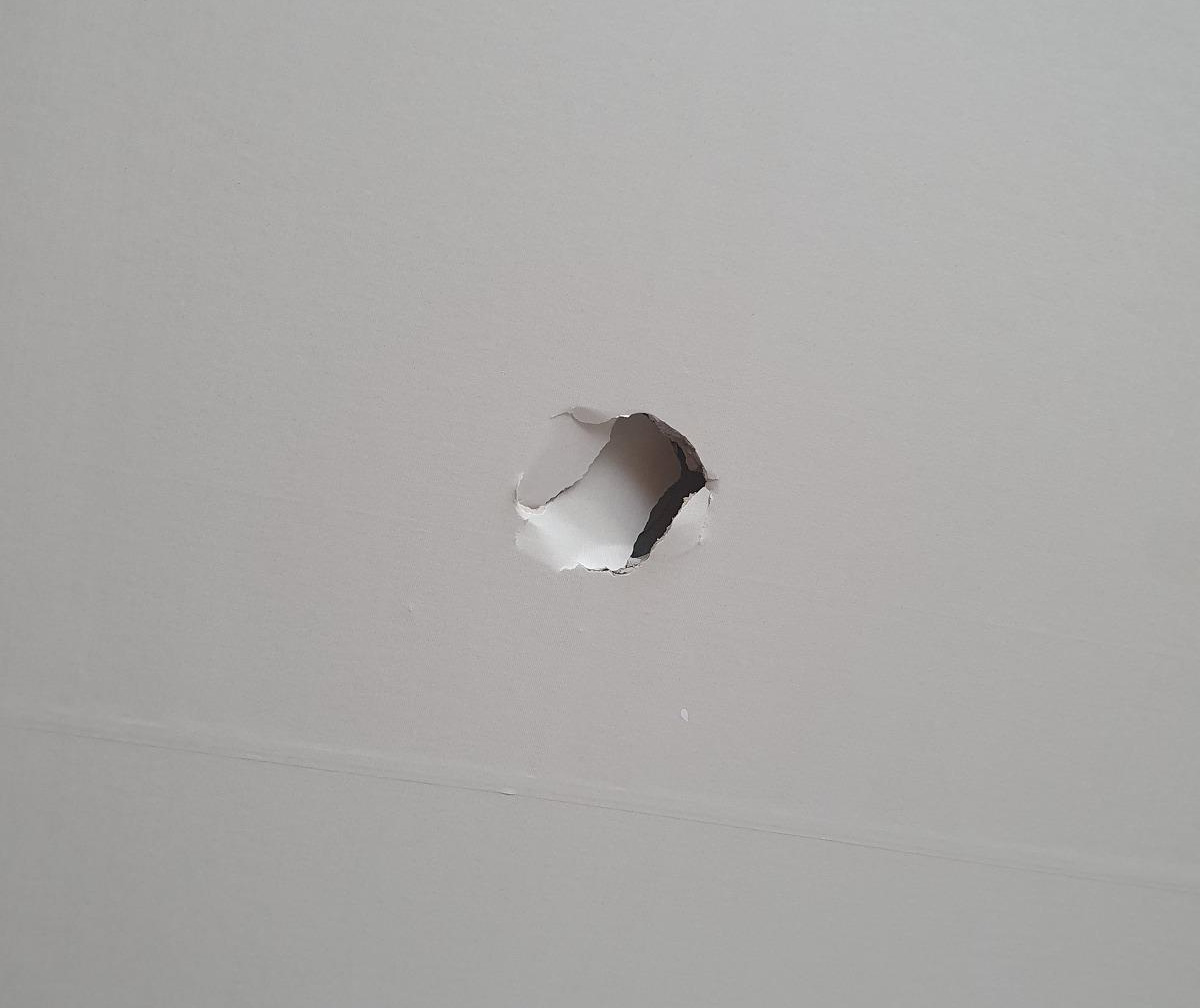 제길... 천장 석고까지 뚫어버렸다.