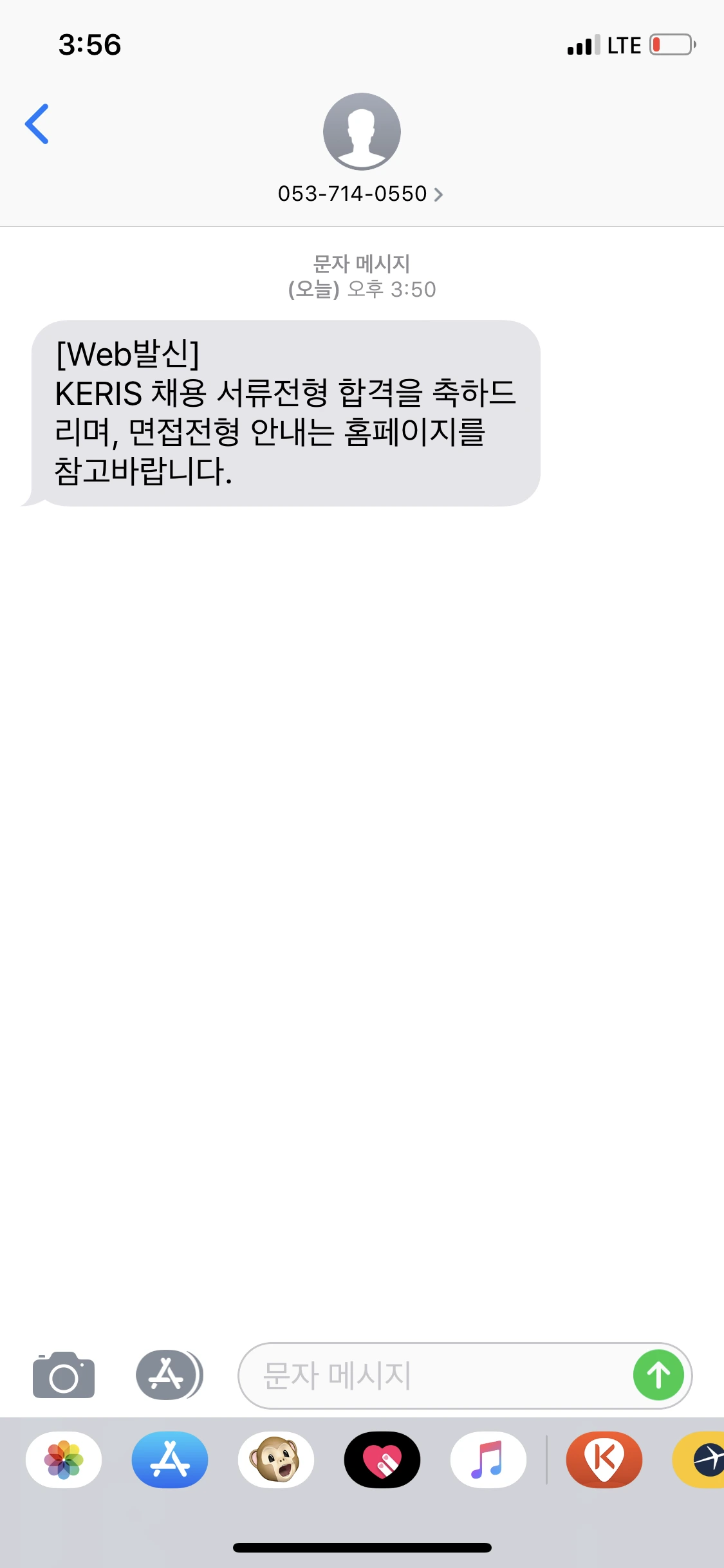 왠 문자가 또롱 와서 봤는데