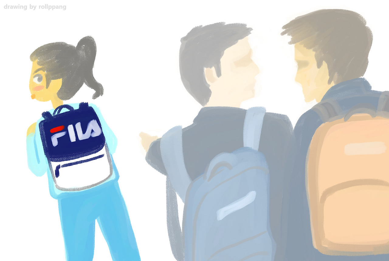 필라 책가방도 매고 걷다 보면, 뒤에서 중학생 오빠들이