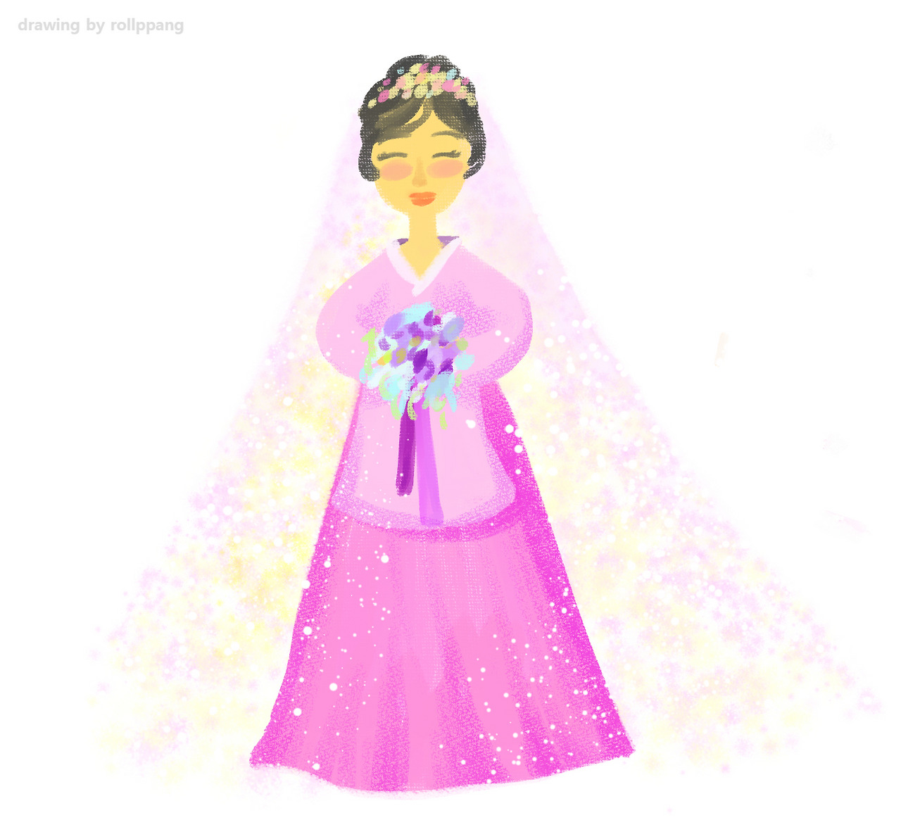 연분홍 한복드레스를 손수 지어 입으신 엄마는 그분과 결혼식을 올렸다.