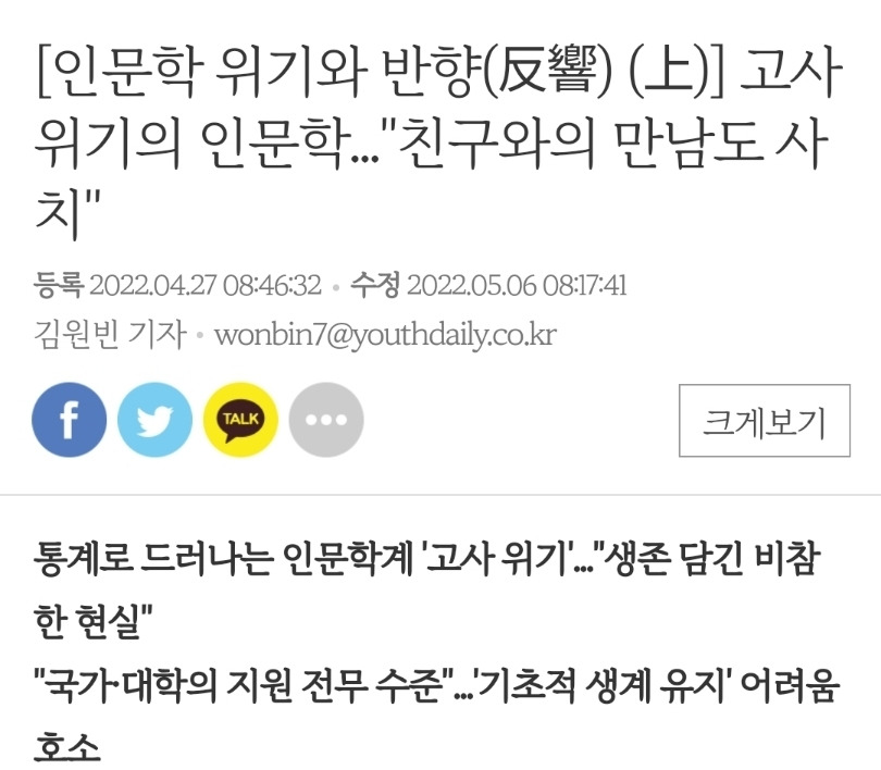 다른 계열의 대학원은 연구실마다 연구사업을 따오거나 국가발전에 기여할 만한 수준의 논문을 발표해서 비용을 충당하거나 커리어에 기반이 될 연구실적을 쌓는다는데, 인문계열 대학원에서는 꿈 같은 소리다. 애초에 대학 연구실에서 진행할 수 있는 프로젝트가 거의 전무한 수준이기 때문이다. 세상이 인문학 연구자들에게 박한 이유는 뭘까? 역시 인문학은 돈이 되지 않아서일까?