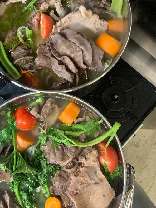 홍창은 소량만 구하기 어려운 데다 조리 시간도 길기 때문에 한번 만들 때 대량으로 만들어 지인들에게 대접한다.