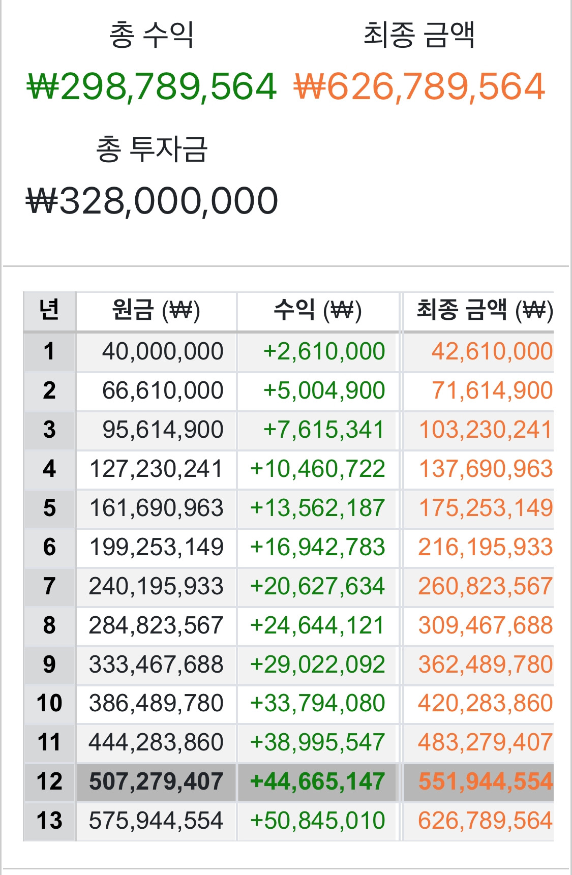 40살에 혼자 살고 있을지, 결혼을 했을지 확실치 않다. 하지만 혼자살든 누군가와 같이 살든 나의 주식투자로만의 월현금흐름이 200만원정도이면 파이어를 충분히 할 수 있을 것이라고 생각한다.