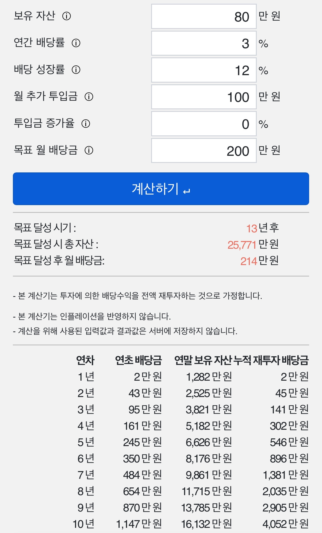 월배당금으로 현금흐름을 만들어보고 싶은 예비파이어족에게 샐러리버프 배당재투자 계산기를 추천한다. 머리로는 그려지지않던 배당재투자 연복리를 눈으로 확인할 수 있다