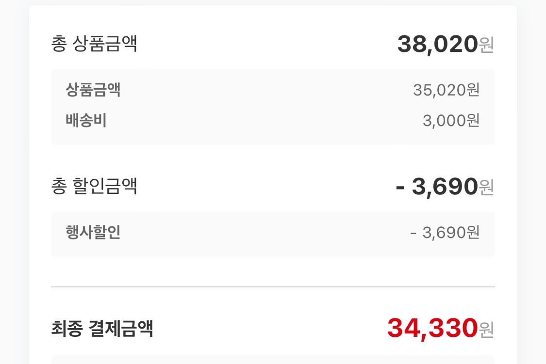 이번주 미니멀 장보기 금액은 34,330원!