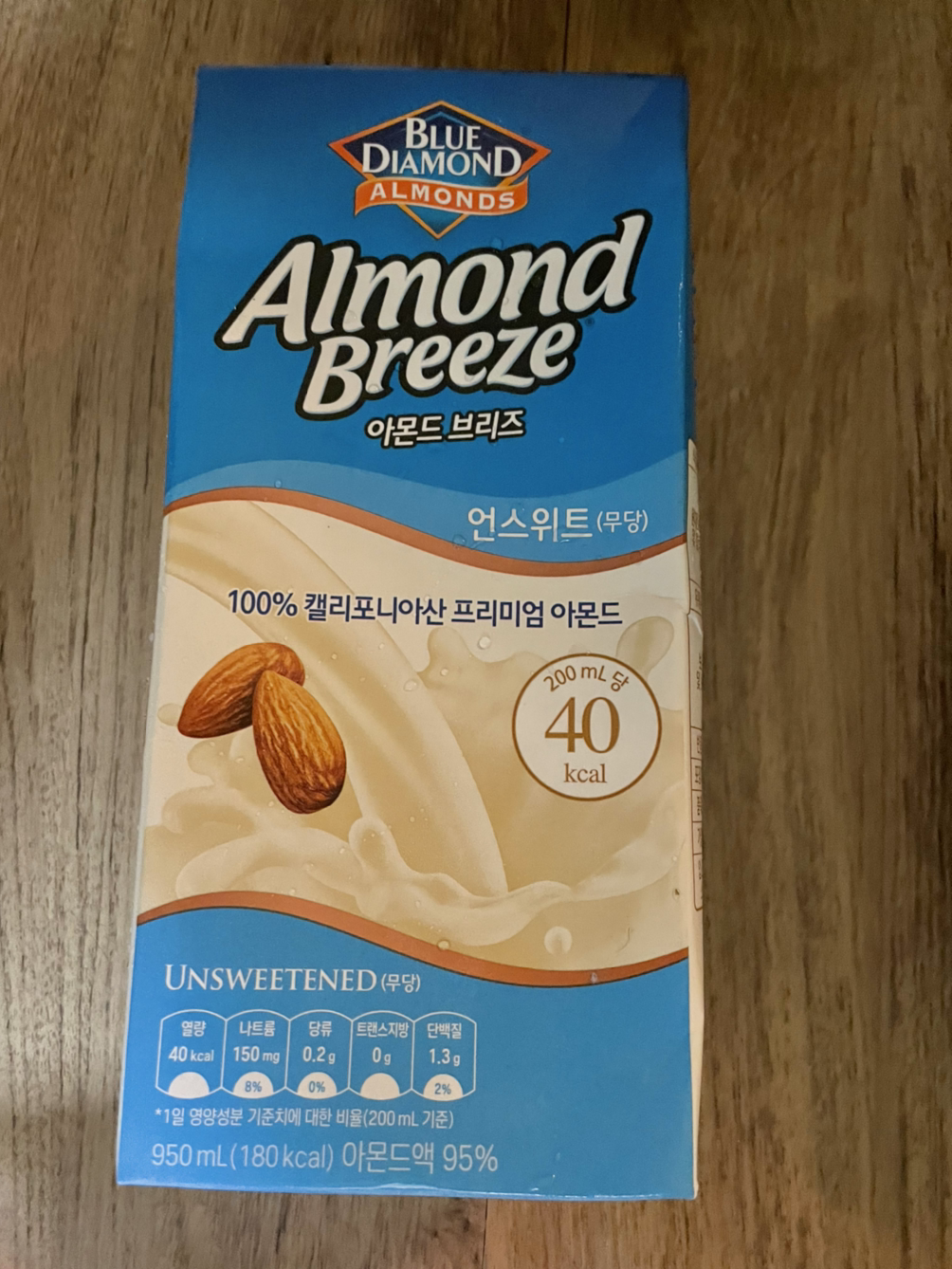 최근에 왠지 달달한 음식을 많이 먹은 것 같아, 오리지날 대신 언스위트(무당)아몬드브리즈를 주문했다