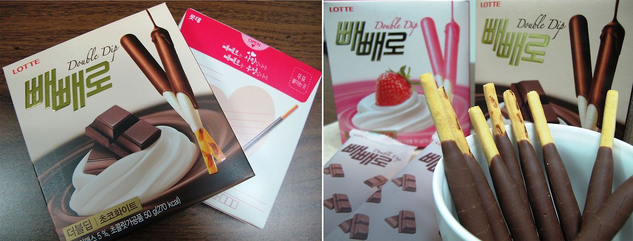 각양각색의 빼빼로 과자들을