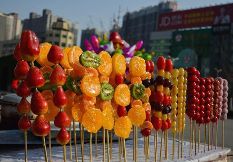 탕후루糖葫芦는 과일을 꼬치에 꿰어 설탕물에 뭍혀 굳힌 과자를 이른다.