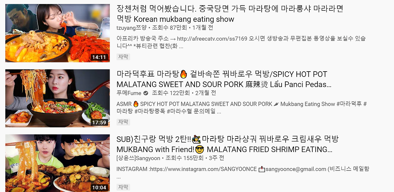 먹방 트렌드가 자리잡게 된 것으로 보인다.
