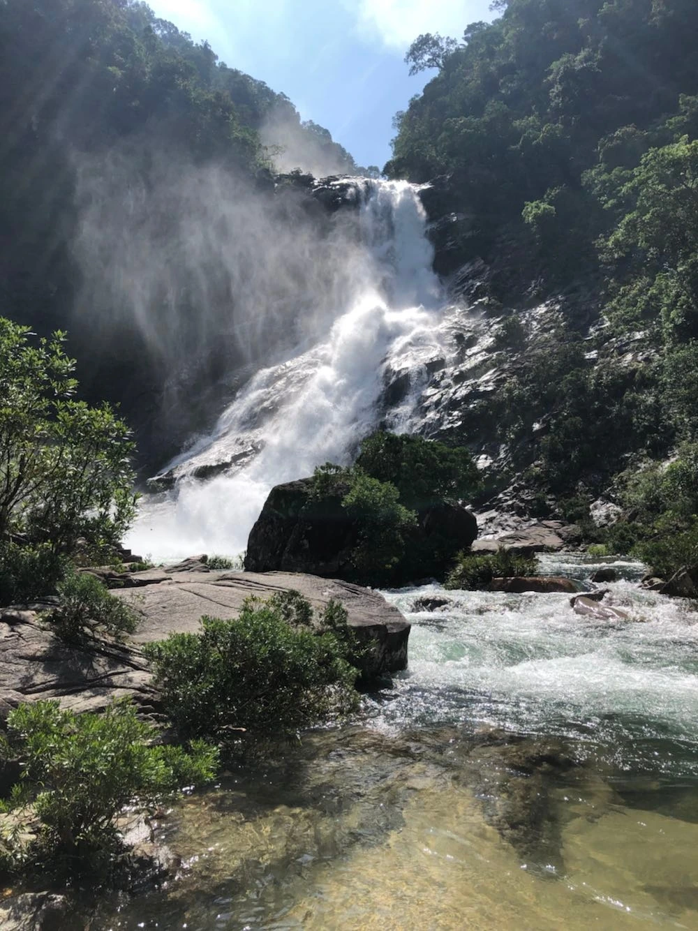 폭포 근처에만 도착해도 폭포에서 부는