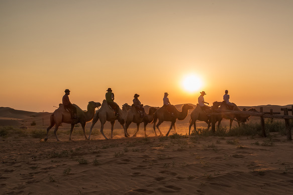석양의 사막을 오르는 낙타와 시인들 _ ⓒ 박용덕