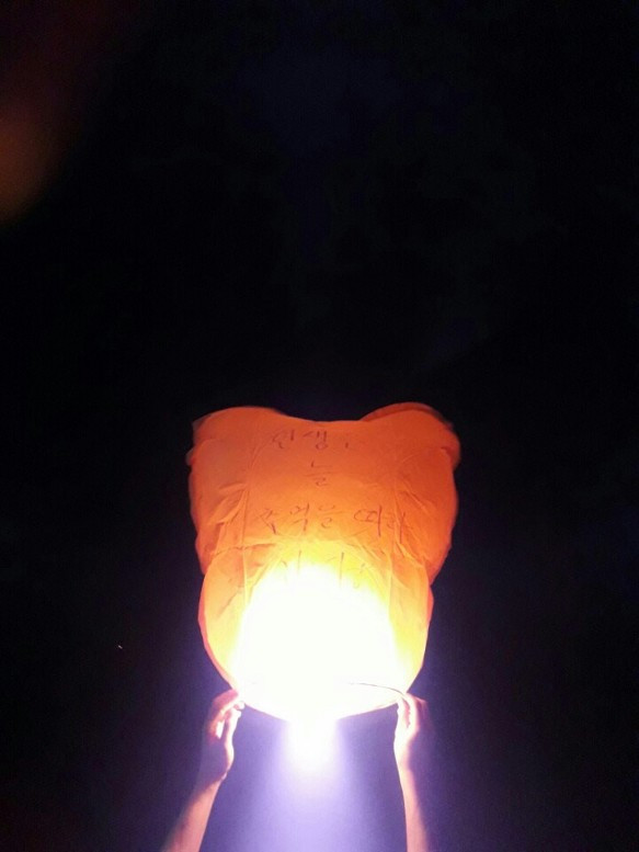 숙소에 돌아온 일행들은 저녁 식사 후 각자의 염원을 정성껏 담아 천등을 올렸다. 천등은 뜨거운 열기를 뿜으며 모래바람을 이기고 언덕을 넘어 하늘로 올라 하나하나 별이 되어 박혔다.