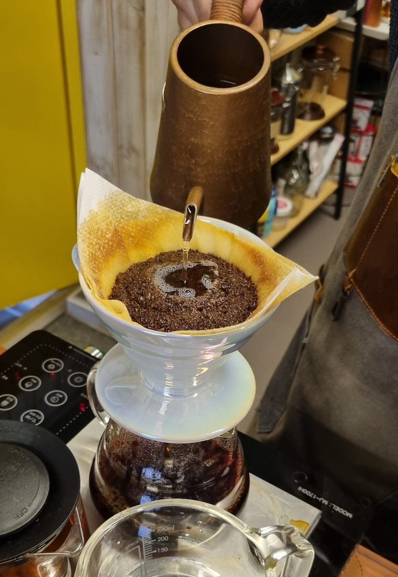 유기니아 커피 내리는 중이렇게 가느다란 물줄기로 20분 간 내립니다.