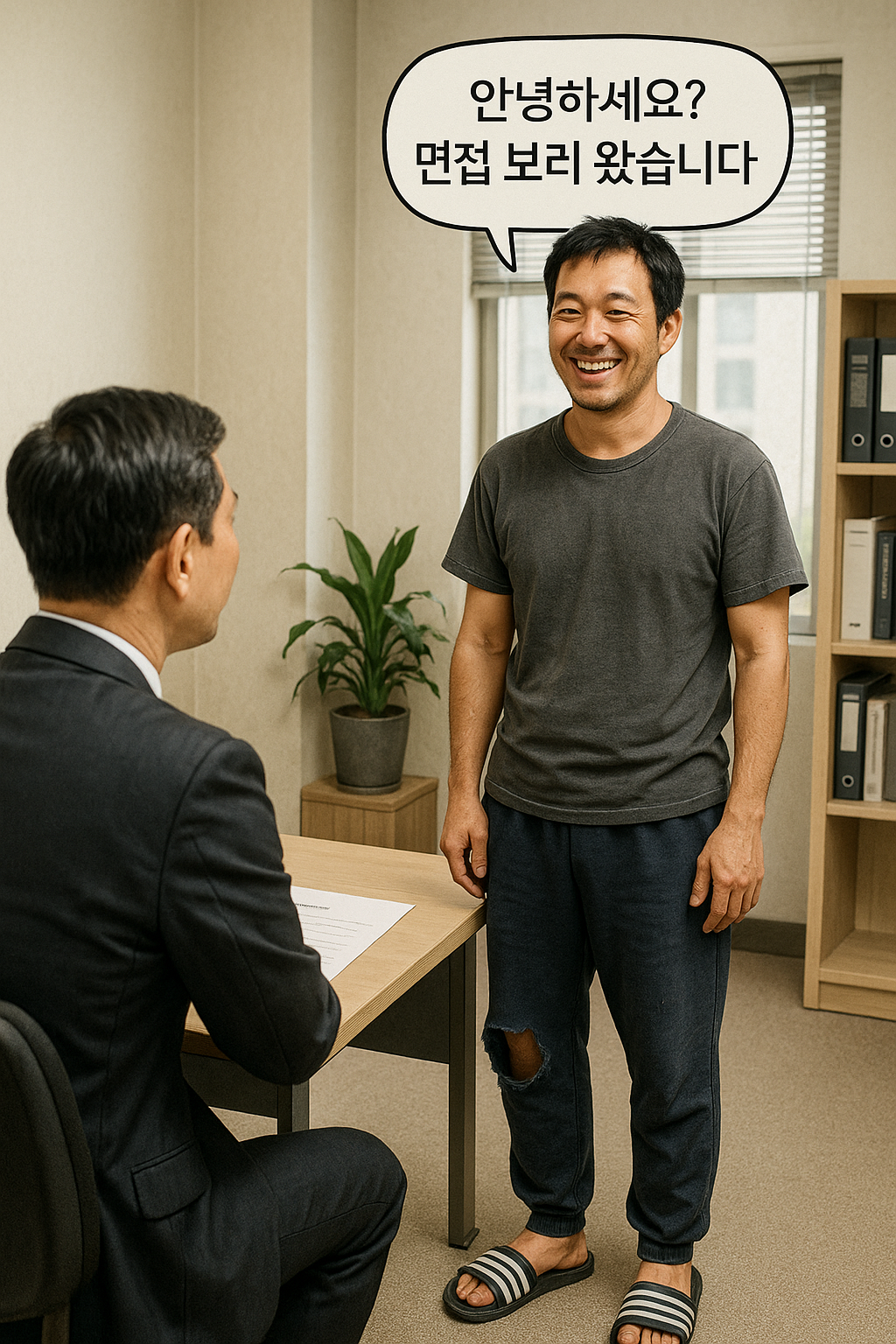 “안녕하세요? 면접 보러 왔습니다.”하는 말에 경악을 금치 못했다.