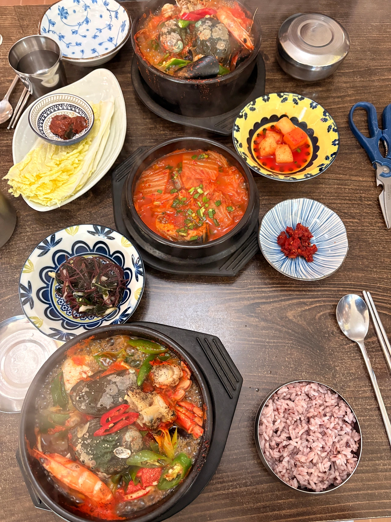 가운데에 보이는 김치찜은 서비스로 주셨는데 메인메뉴에 버금가는 준수한 맛이었다.