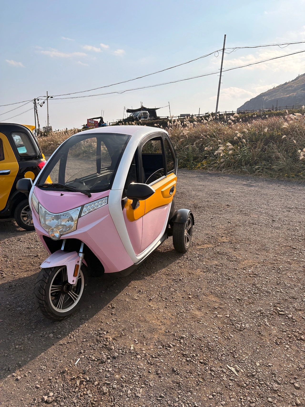 우도에서는 다양한 이동수단을 선택할 수 있다. 섬 내를 순회하는 버스도 있고 각종 개인형 이동장치를 업체에서 대여할 수 있다. 친구와 나는 삼륜 전기스쿠터를 빌렸는데 한 대에 남자 두명이 타는건 미관상 좀 그러하니 각자 한 대씩 빌렸다.(면허증 있어야 대여 가능)