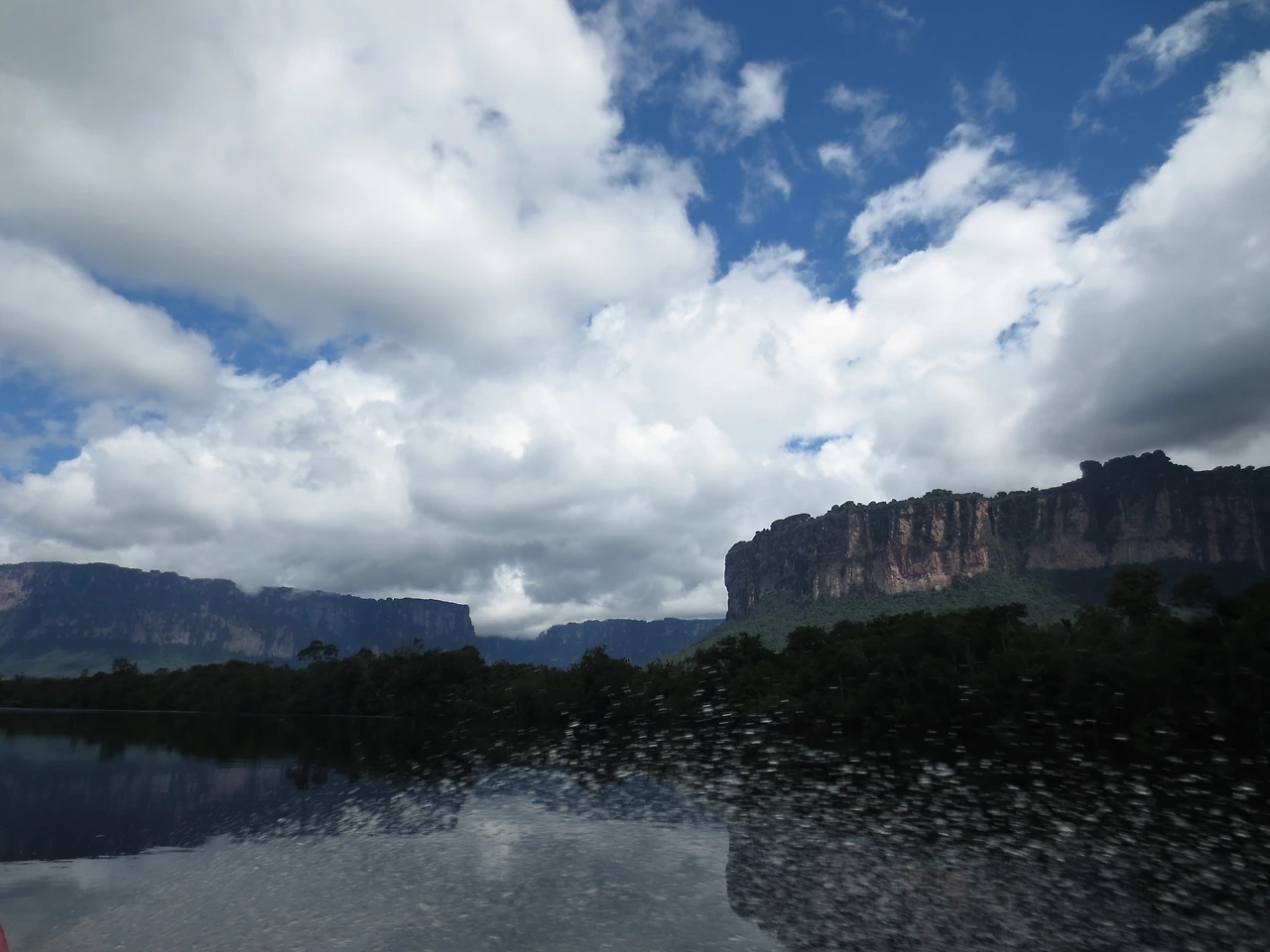 엔젤폭포까지 가려면 국립공원 안으로 더욱 깊숙이 들어가야 해서 이번에 우리는 다시 10인승의 빨간 모토 보트에 몸을 실었다. 보트는 부왕부왕- 큰 소리를 내며 후룸라이드처럼 격렬히 앞으로 나아갔다. 그 반동으로 강물이 얼굴까지 차갑게 적셔 정신이 번쩍 들었다. 커다란 강의 주변에는 녹빛의 그란 사바나가 우거져 있었고 테푸이가 한폭의 그림처럼 쉼 없이 이어졌다. 물론 로라이마의 크기에 비할 바는 못되지만 다시 테푸이를 만나 반가웠다.