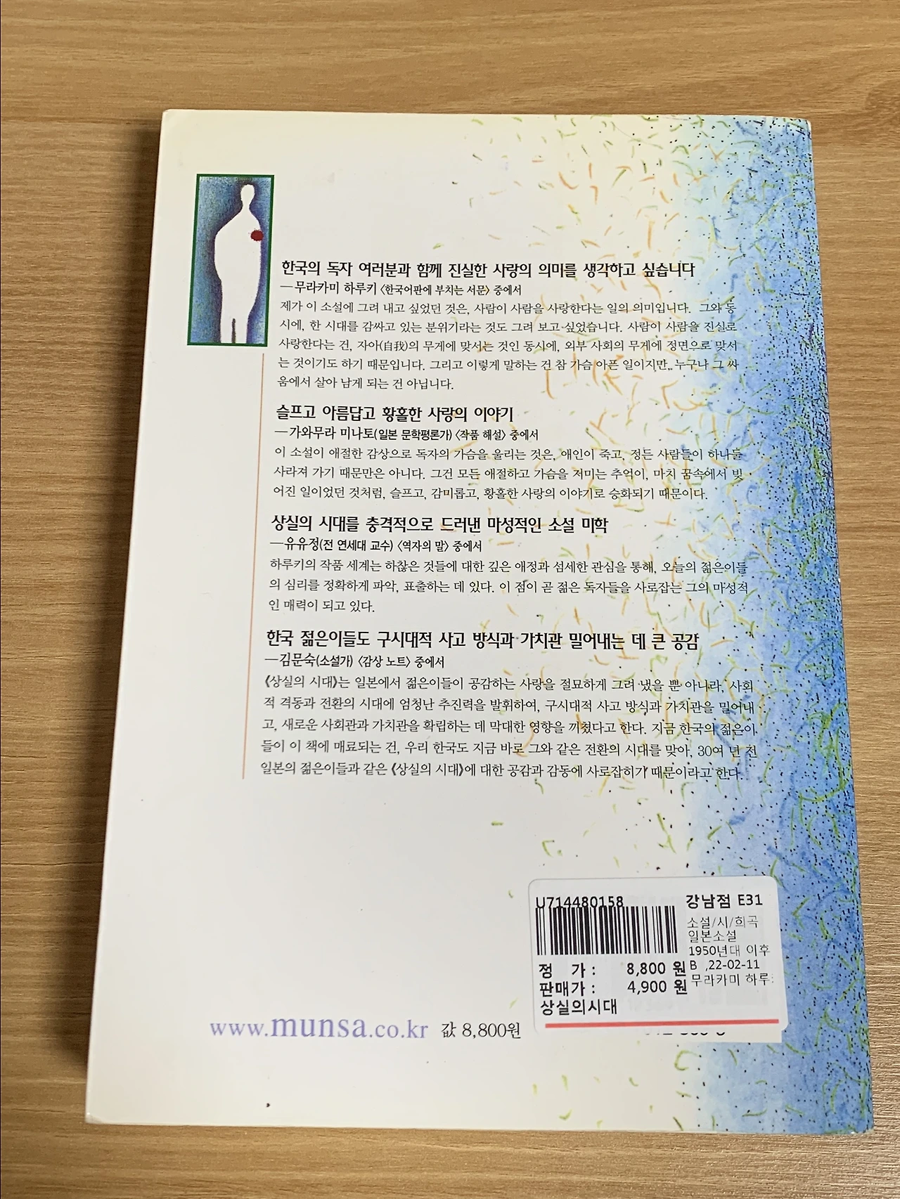 서점을 구경하다 퀄리티가 꽤 좋은 무라카미 하루키의 <상실의 시대>를 발견했다. 게다가 4,900원으로 커피값밖에 하지 않아 고민하지 않고 구매했다.
