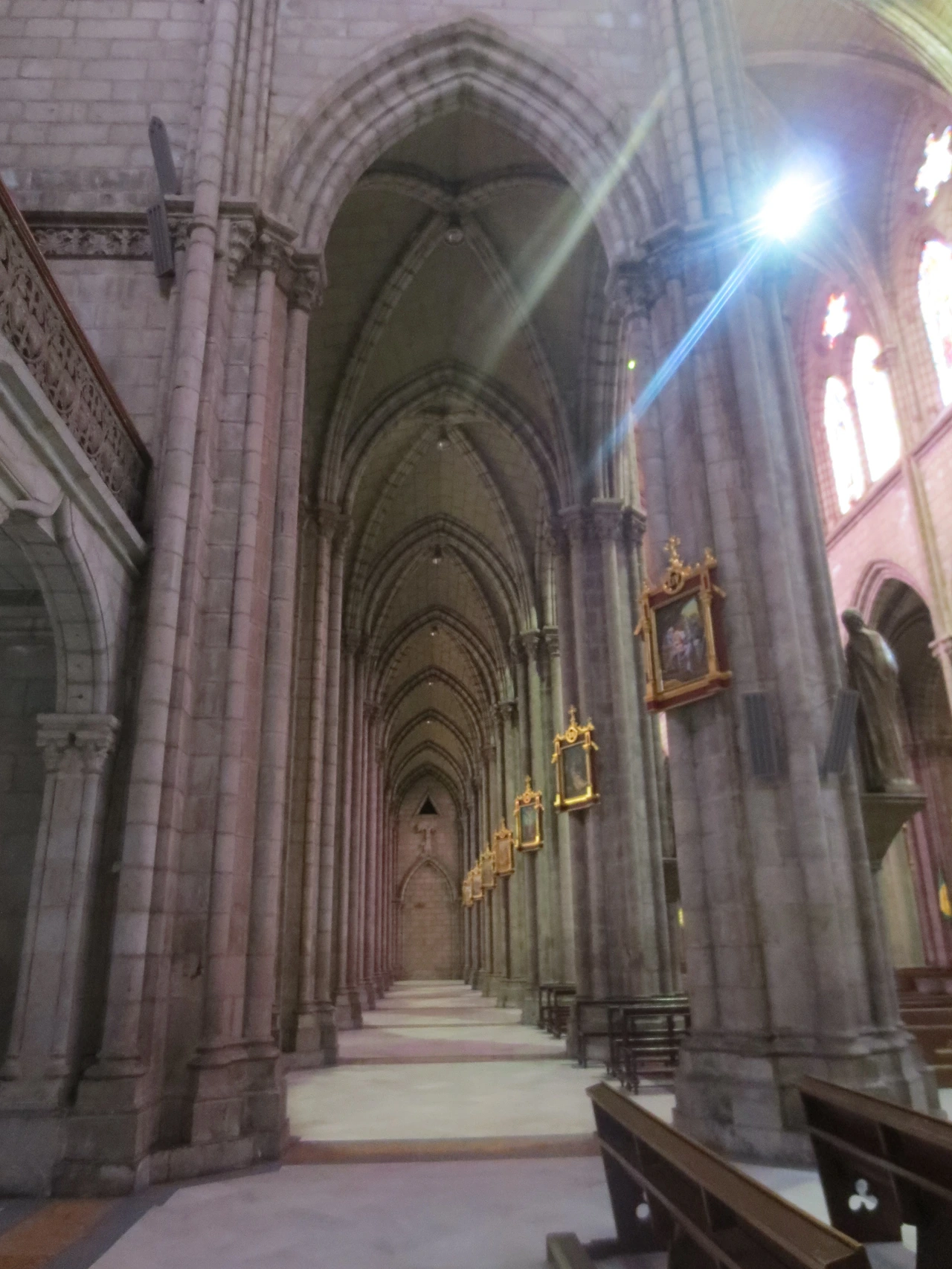 성당 내부에 들어서자 엄청나게 높은 천장에 압도되었다. 층이 나뉜 줄 알았는데 건물 전체가 한 층이었던 거다. 견고하게 조각되어 있는 돌기둥과 금빛 액자 안에 고이 담긴 신비한 그림들이 벽면을 촤르르 장식했다. 천장의 모든 면에는 스테인드글라스로 된 창문이 빙 둘러져 있어 형형색색의 빛이 환하게 들어왔다. 언제부턴가 스테인드글라스 창문은 공간을 촌스럽게 만든다는 인식이 있었는데 이곳의 창문은 성당을 더욱 경건하고 아름답게 만들어 주었다.