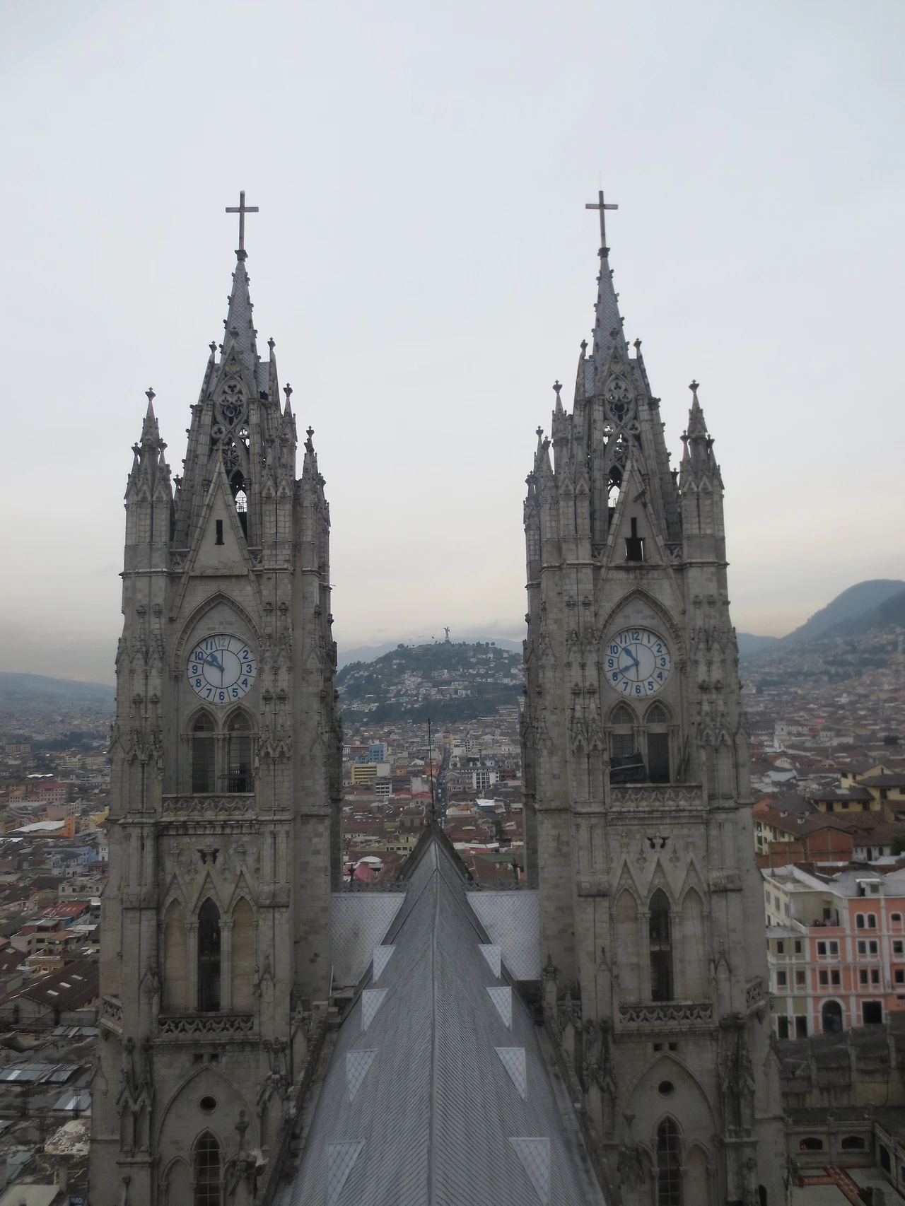 바실리카 성당의 특징적인 점은 쌍둥이처럼 똑같이 높게 솟은 두 개의 시계탑이다. 목이 꺾일 듯 고개를 들어야 시계탑 위 십자가를 겨우 발견할 수 있다. 성당에 들어갈 때 1달러, 전망대에 갈 때는 2달러를 내야 한다. 참고로 에콰도르는 미국 달러를 사용해서 환전을 따로 하지 않아도 되어 꽤 편했다.