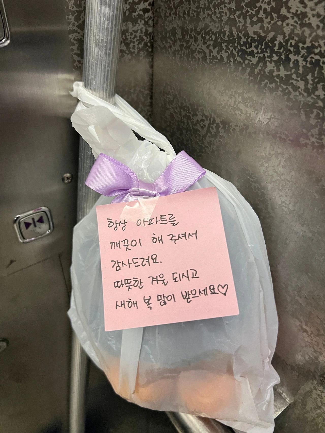 나는 수년 전부터 연말이면 나의 소소한 개인 이벤트를 꾸민다. 그 대상은 가깝지만 멀리 있는 사람들인데, 어떤 해에는 한 번도 마주친 적도 없는, 새벽을 여는 요구르트 아줌마의 카트에 잔뜩 핫팩과 응원의 메시지를 올려놓고 도망간 적도 있고, 어떤 해에는 회사 건물 청소하시는 여사님들에게 비슷한 짓을 한 적도 있다. 내 아이가 태어나던 해에는 고아원의 아이들이 되기도 하고, 매년 대상자는 바뀌었지만 원칙은 나를 굳이 밝힐 이유도, 안다고 해서 덕을 볼 것도 없고, 그들이 받아도 크게 부담스럽지는 않지만 소소하게 마음의 온기를 느낄 수 있을 법한 것들이었다.