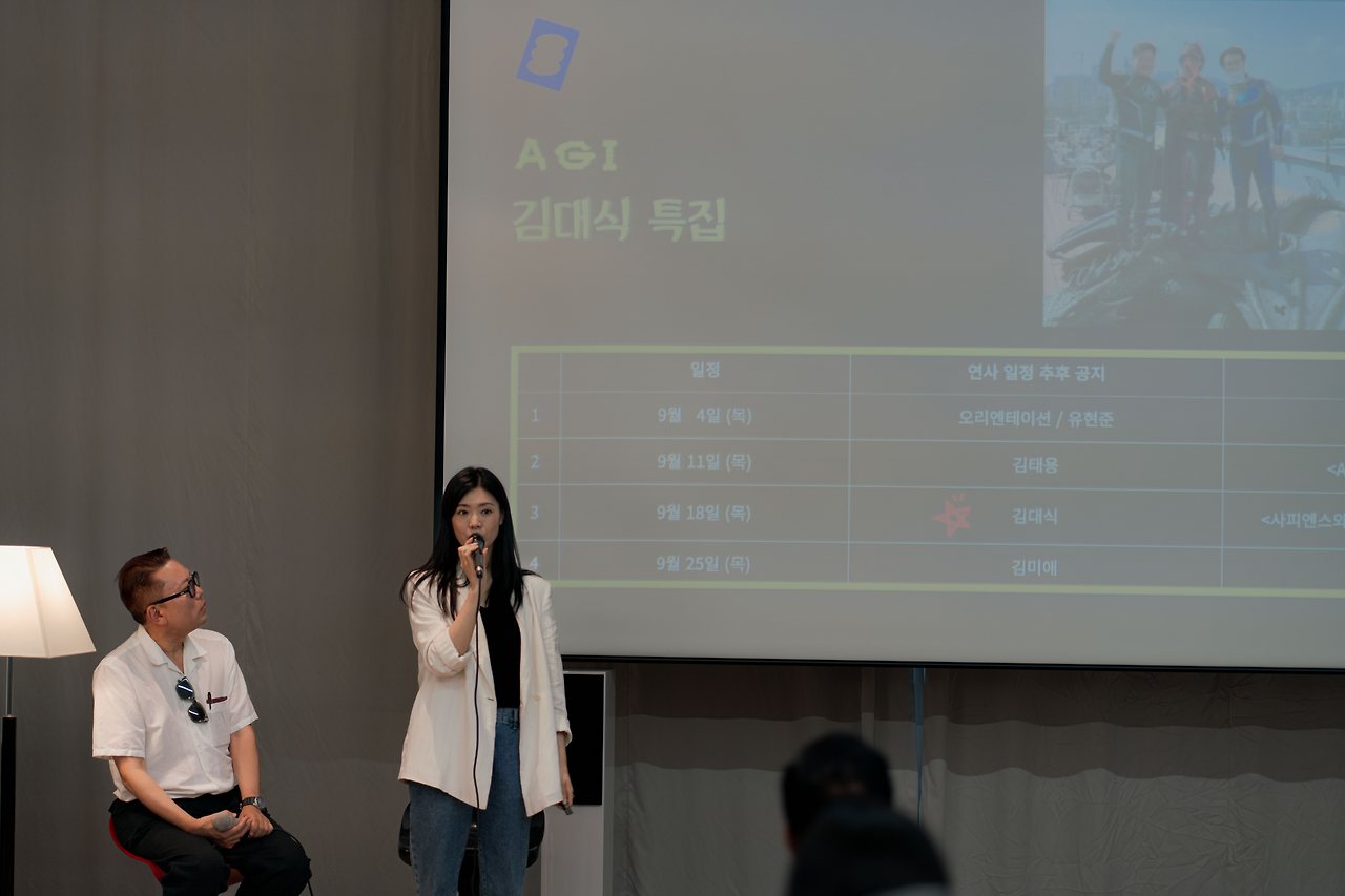 부천국제판타스틱영화제 집행위원장인 신철 대표님의 깊이 있는 질문과 이야기를 통해 현재 영화 시장이 고민하고 나아가는 방향성에 대해서도 함께 공유받을 수있는 시간과 함께 김태용 감독님과 오랜 기간 작업을 이어오고 있는 임다슬 작가님이 게스트로 방문해주셔서 최근 공개된 단편영화의 수상 소식과 작업과정을 공유해주시며 영화라는 주제로 모두가 이야기 꽃을 풍성하게 피워낸 두번째 시간이었습니다.