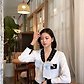 강수화 진주여고 졸업, 미국 캘리포니아 소재, Beauty College 졸업. 한국소설가 협회 회원.