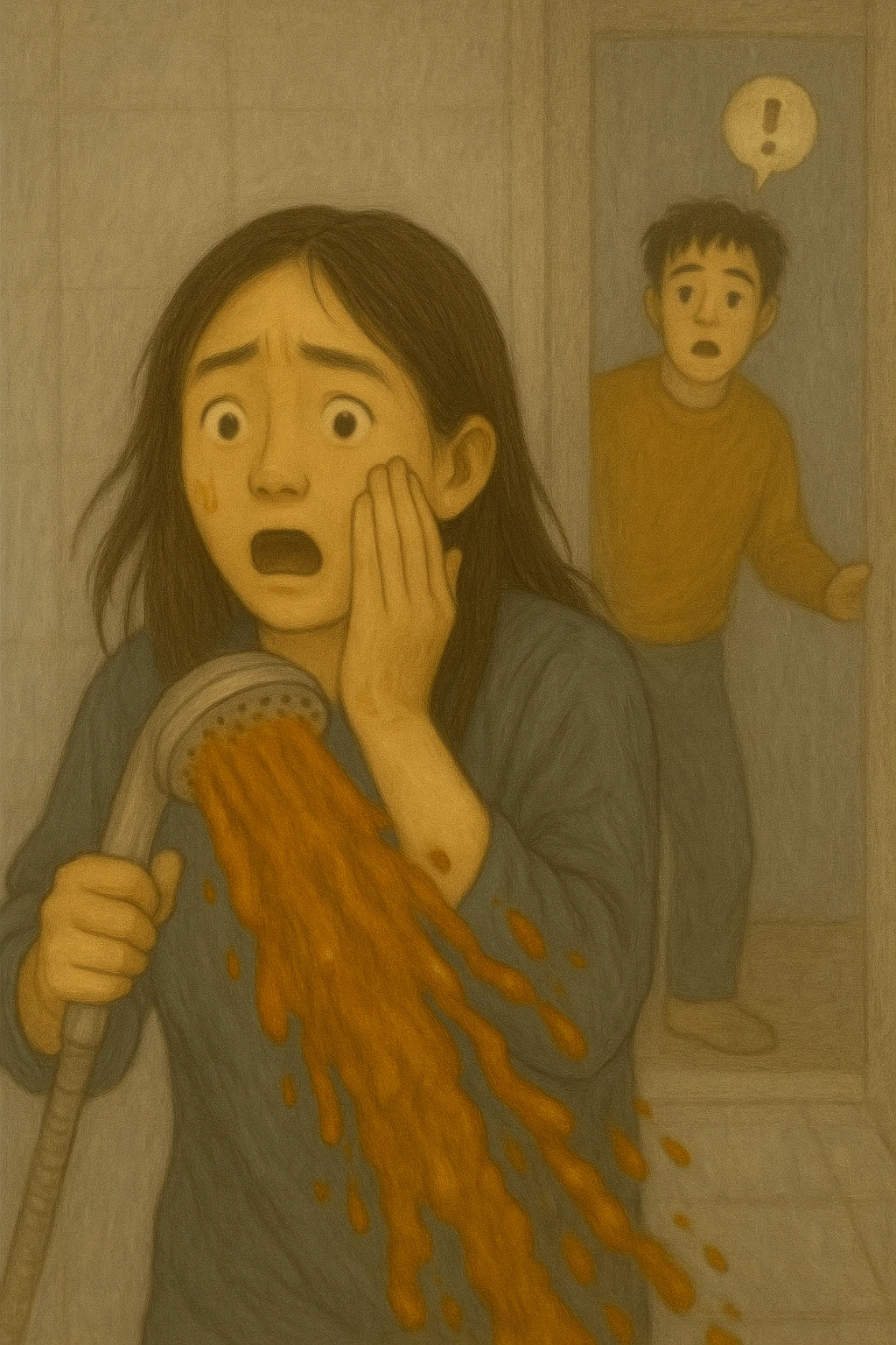 붉은 물이 세게 뿜어져 나올 때까지는.