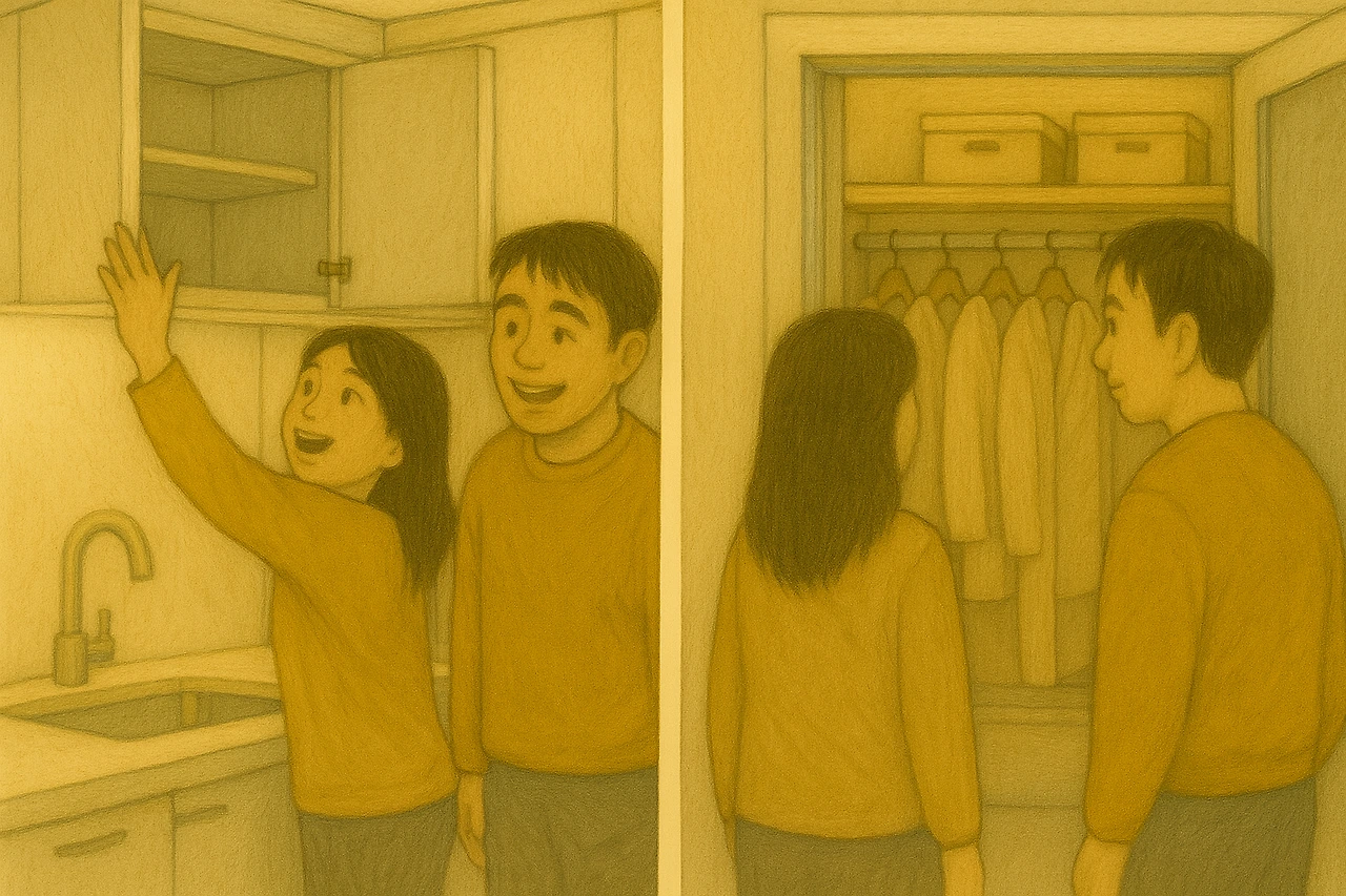 드레스룸에는 옷이 가지런히 걸려 있었다.