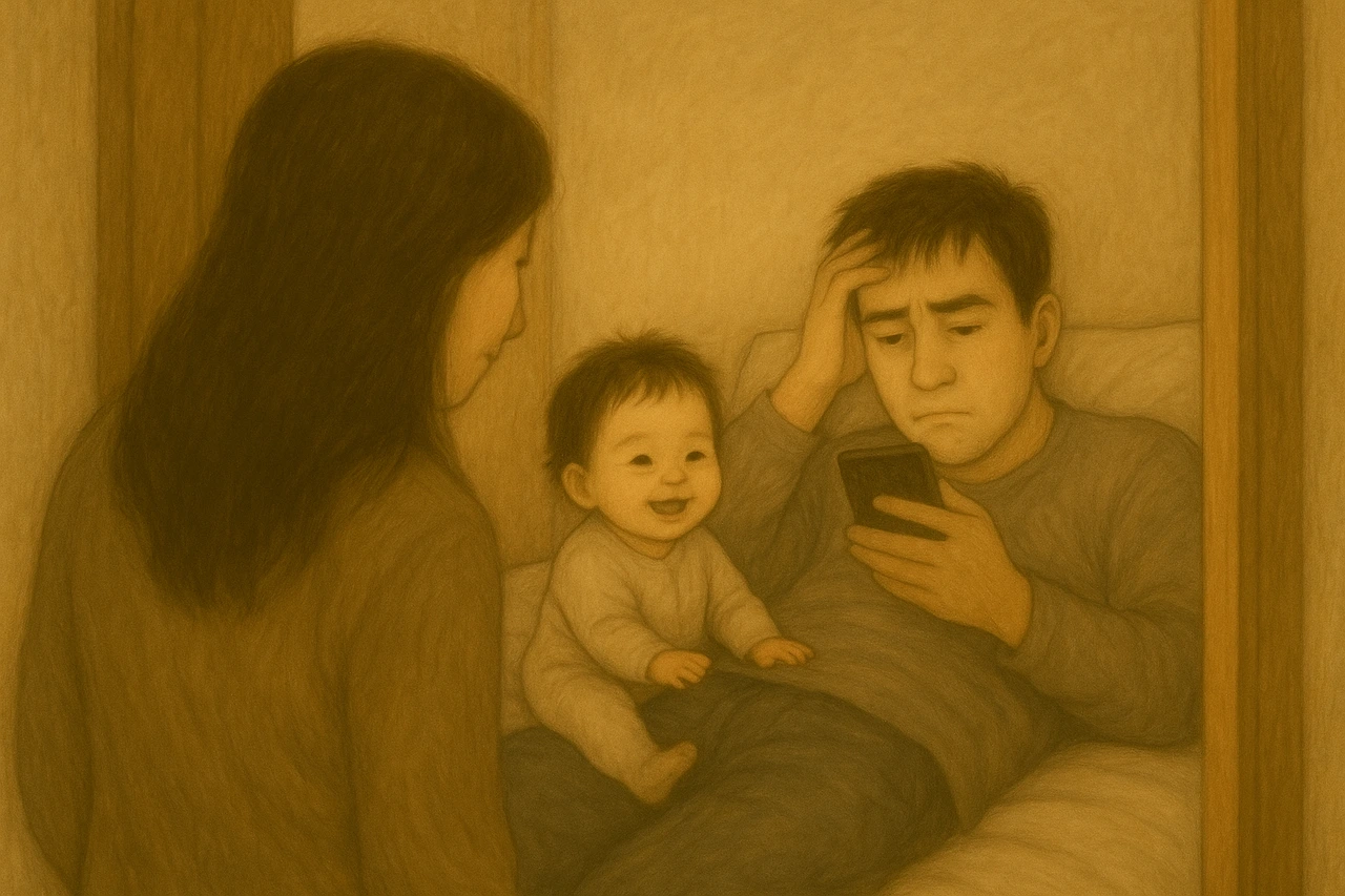 침대 위에 누운 남편이 내려다보고 있는 스마트폰 화면이었다.