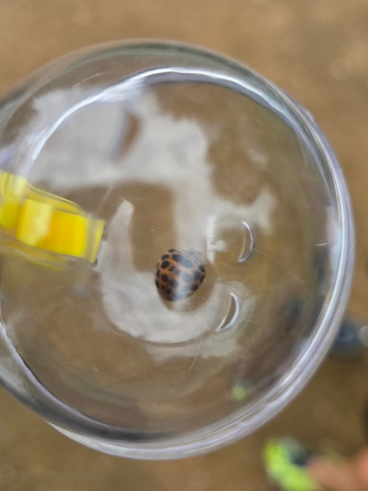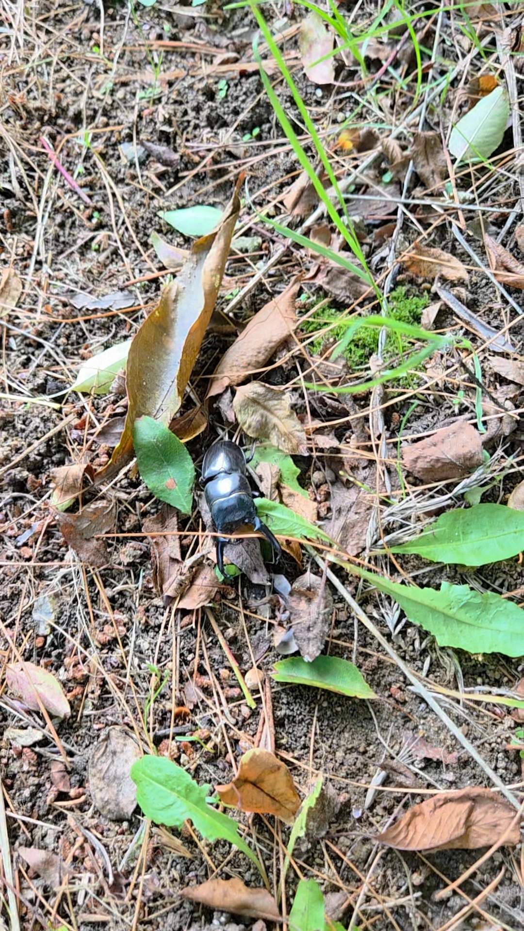 뒤집혀 버둥거리던 사슴벌레를 발견했다.