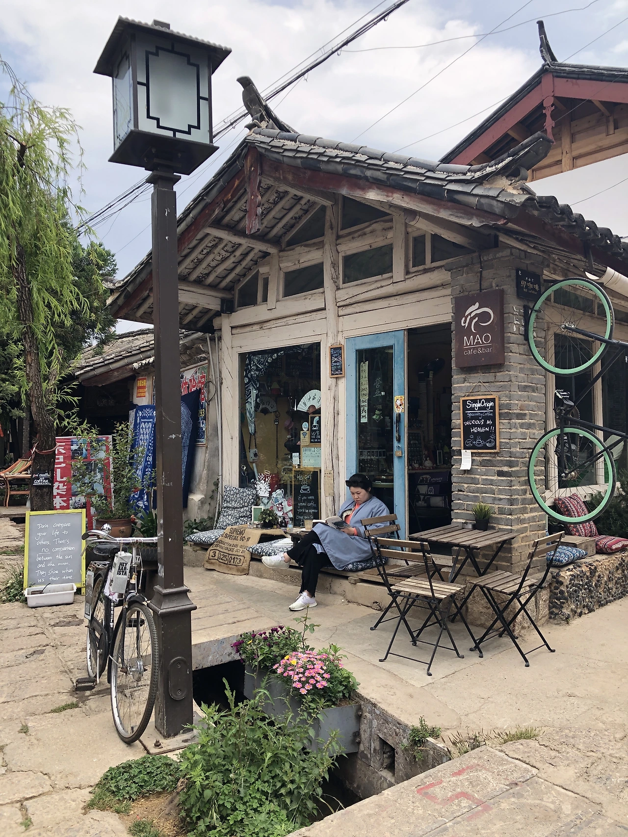 다들 부럽다고 할 때는 언제고, 온통 오지로 떠난 장기 여행자의 끼니를 걱정하는 문자다. 사람들을 안심시켜야 할 텐데, 먹는 게 신통찮아 보낼 인증숏이 마땅치 않았다. 갖은 재료로 만든 여러 요리를 한 상에 올려 나눠먹는 중국식 음식 문화. 하지만 풍요 속 빈곤이라고, 나 홀로 여행자는 덮밥이나 면으로 한 끼를 때워야 할 때가 많다. 한 가지 위로가 되는 것은 커피였다. 차(茶)의 나라 중국에도 카페는 숱하게 있으니까. 심지어 리장 고성 가장 외진 마을 바이샤에도 서울 유명 로스터리 카페에 뒤지지 않는 마오 카페가 있다.