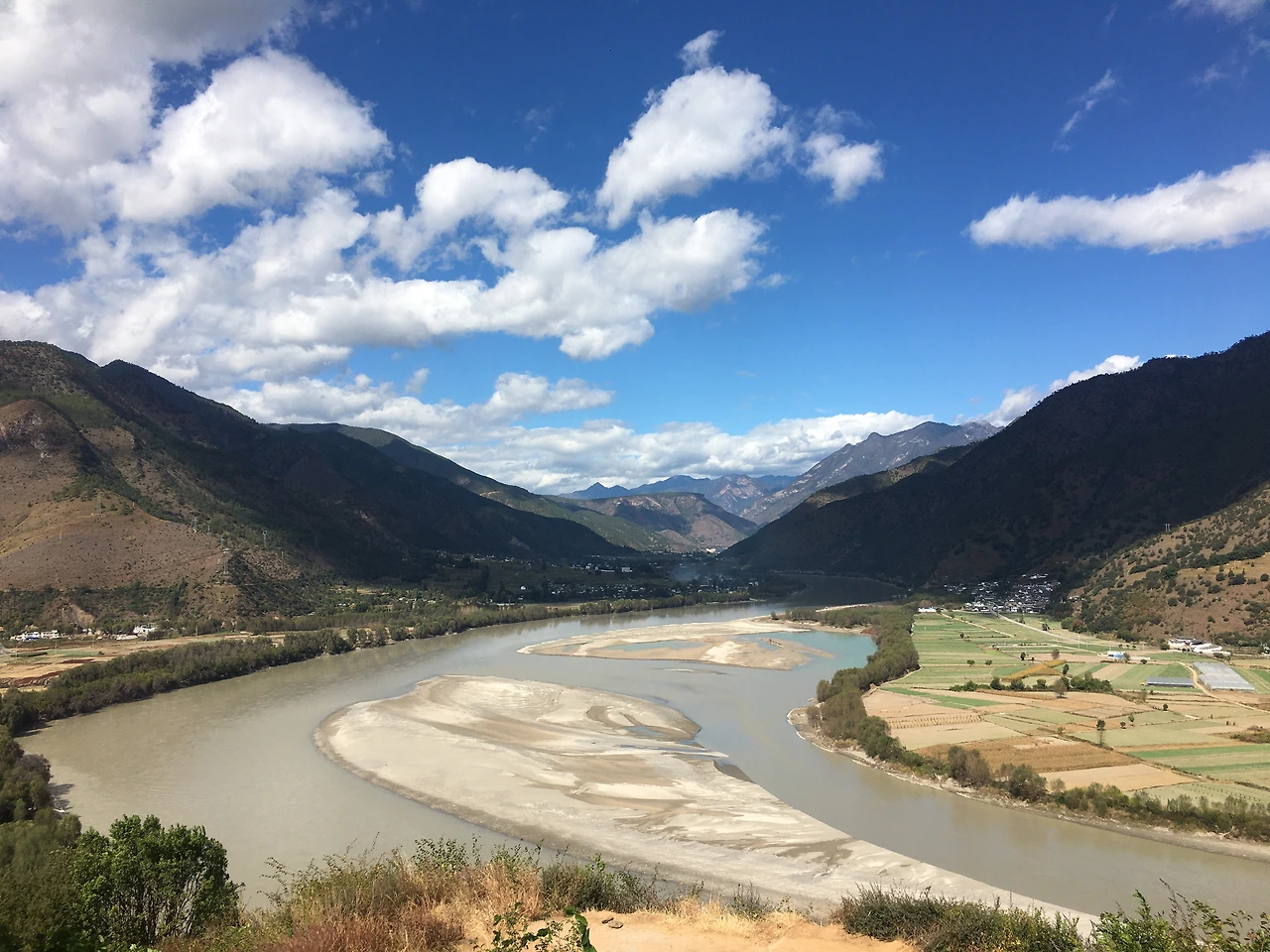 윈난성 리장 외곽의 스구전(石鼓镇, 석고진)은 장강 상류 진사장이 처음으로 꺾어지는 ‘장강제일만(长江第一湾)’으로 유명합니다. 장강제일만은 2008년 베이징 올림픽 개막식에서도 중국을 대표하는 풍경으로 등장했는데요. 스구전의 일만반점(一弯饭店) 뒷산에 올라가면 그 풍경을 내려다볼 수 있습니다. 한 시간 정도 산길을 오르면 앞이 트인 전망대가 나오는데요. 풍경의 규모가 커서 초광각 카메라가 아니면 한 번에 담기조차 여렵습니다. 4~5시간 수풀을 헤치고 올라가야 비로소 그 위용을 제대로 감상할 수 있습니다.