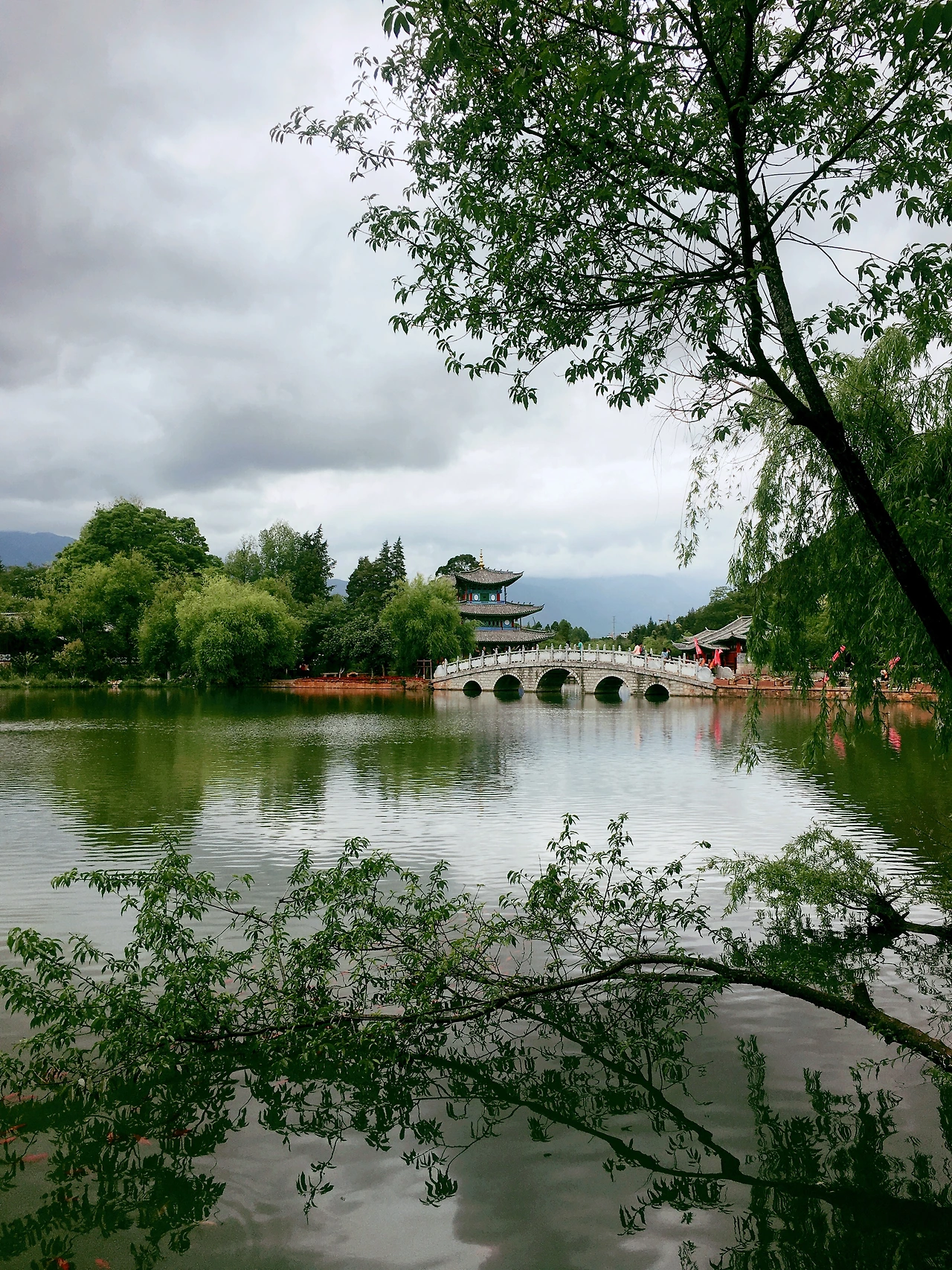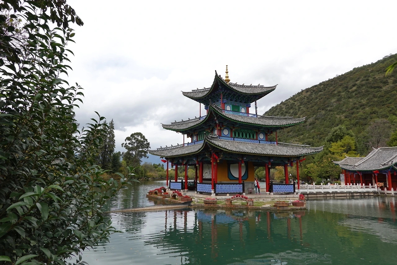다옌구전 동북쪽 헤이룽탄(黑龙潭, 흑룡담)공원은 위룽쉐산의 만년설에서 흘러내린 물이 솟아나 호수를 이루는 곳이라 하여 옥천(玉泉)이라고도 불린다. 이 물은 수천 갈래 물줄기로 나뉘어 리장의 고성마을 곳곳을 흐른다. 맑은 물에 비친 설산과 하늘의 모습이 장관을 이룬다는데, 위롱쉐산은 구름에 숨어 좀처럼 얼굴을 보여주지 않았다. 호수 중앙에 우뚝 서있는 득월루(得月樓)의 현판과 정면에 걸린 주련의 시는 근대 중국 최고 지식인으로 시인, 역사학자, 고고학자, 극작가, 그리고 정치가였던 궈모러(郭沫若, 곽말약)의 친필이다. 오른쪽에는 마오저둥(毛泽东) 주석이 옛 시에서 발췌 편집한 시, 왼쪽에는 궈모러가 쓴 시가 적혀있다. 득월루에 앉아 시를 곱씹으며 흑룡담의 봄과 겨울을 상상해보았다. 폭신한 봄바람이 살랑살랑 불어오면 호숫가에 늘어진 버드나무가 봄을 알아 싹을 틔우고, 금세 수천수만 개의 나뭇잎이 돋아나 팔랑거리겠지. 겨울이 오면, 삼백만 옥룡의 갑옷 비늘이 하늘에서 떨어지듯 흩날리는 눈송이가 산과 대지를 뒤덮을 것이다.