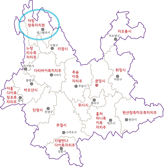 2019년 5월, 고원지대 샹그릴라는 아직 쌀쌀했다. 관광 비수기라 거리에는 사람이 없고, 신축 건물에는 객잔, 식당, 슈퍼마켓뿐이라 유령도시 같은 느낌이었다. 같은 해 10월 다시 찾은 샹그릴라에서는 고성 주변 도로 정비가 한창이었다. 고성 중심에서 몇 킬로미터 떨어진 지역까지 객잔과 상가들이 들어서고 있었다. 현지인뿐 아니라 최근 타지에서 온 사람도 많다고 한다. 이들은 샹그릴라-리장 간 고속철도와 고속도로가 개통되는 2020년 관광 특수를 예상하며 기대에 부푼 표정이었다. 2001년 이름까지 바꾸며 관광산업으로 일어선 샹그릴라는 20년 만에 또 한 번의 일확천금을 꿈꾸는 외지인들의 유토피아였다.