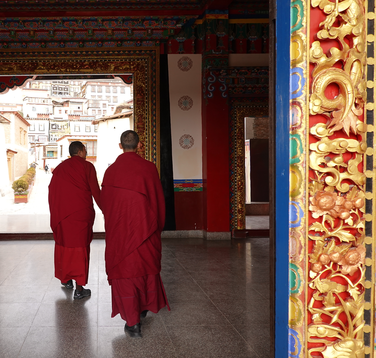두커종고성 중심부 구이산공원(龟山公园, 귀산공원)에는 세계 최대 마니통이 있다. 최소 성인 6~7명이 함께 돌려야 움직일 만큼 거대하다. 본래 경통에는 불경을 새겨서, 한 번 돌릴 때마다 불경을 한 번 읽는 것과 같다고 여긴다. 그런데 샹그릴라 대경통에는 불경 대신 중국 56개 민족의 화합과 단결을 의미하는 문양이 장식돼 있다. 관광객은 저마다 소원을 빌며 힘을 모아 마니통을 돌린다. 불경은 속세의 번뇌를 잊고 깨달음을 얻기 위해 읽는 것인 줄 알았는데, 이곳 경통은 기복신앙 성격이 강하다. 국가는 국가의 안녕을 비는 경통을 만들고, 국민은 개인의 복을 빌며 경통을 돌린다. 샹그릴라는 고산지대라 조금만 움직여도 쉽게 숨이 차기 때문에 마니통 돌리는 데는 인내가 필요하다. 그나마 이것이 가장 불경의 도리에 가까운 점이다. 숨을 헐떡이며 계단을 올라갔다 대경통을 보고 내려오는 길, 나는 ‘돈오돈수’를 경험했다.