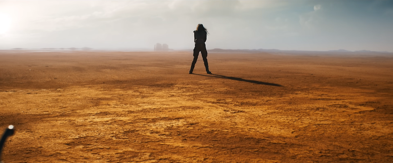 실제 촬영 스턴트 비중이 상당히 높았던 전작 <매드맥스: 분노의 도로>에 비해 이번 <퓨리오사>는 cg 비율이 상당히 높다. 분노의 도로는 나미비아의 한 사막에서 온갖 차량들과 기물을 부수며 촬영된 영화이다. 그럼에도 시타델이나 거대한 협곡 같은 경우... 게다가 최고의 명장면으로 손꼽히는 모래 폭풍 씬 역시 노골적인 cg 작업의 산물 아닌가. 이 화려하고 멋진 cg 작업은 사실 그 둘이 별차이가 없다는 듯이 실재 사막에서 촬영된 액션씬 뒤에 나타난다. 여기에 더 딴지를 걸고 넘어지자면 실제 촬영된 장면들도 보정 한번 씨게 거친 결과물이라는 점에서 분명히 나눠지지는 않는다.